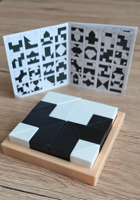 The ordered item arrived quickly. Contains 16 plastic parts, a plastic bowl for folding, and a book with pictures arranged by difficulty 👌🏻 excellent game for kids too.