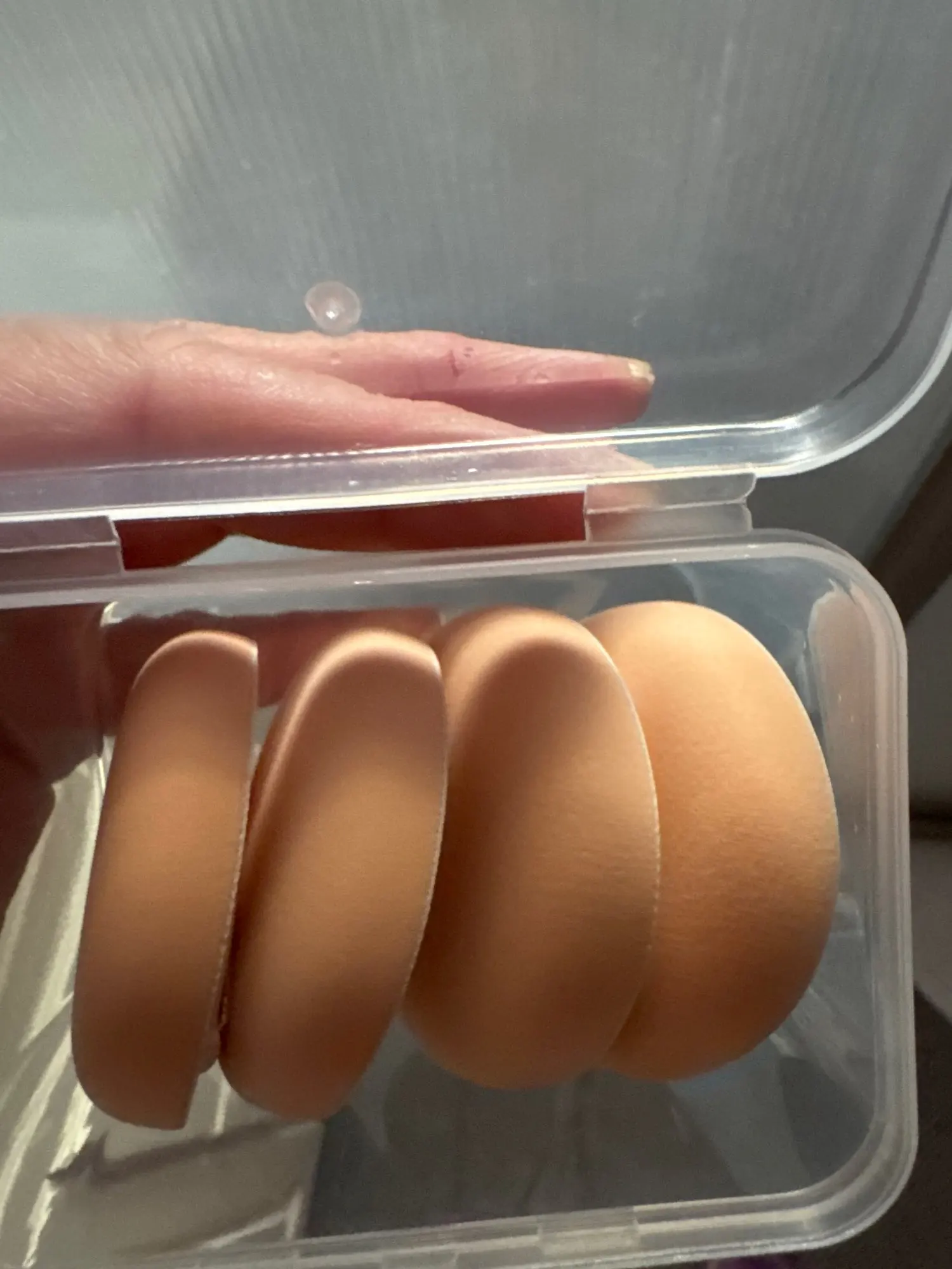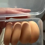 It’s perfect to blend foundation and concealer onto your face. The sponge is bigger than those that are used on the fingers for concealer. I’m a big fan of this shape! Here the photos for reference