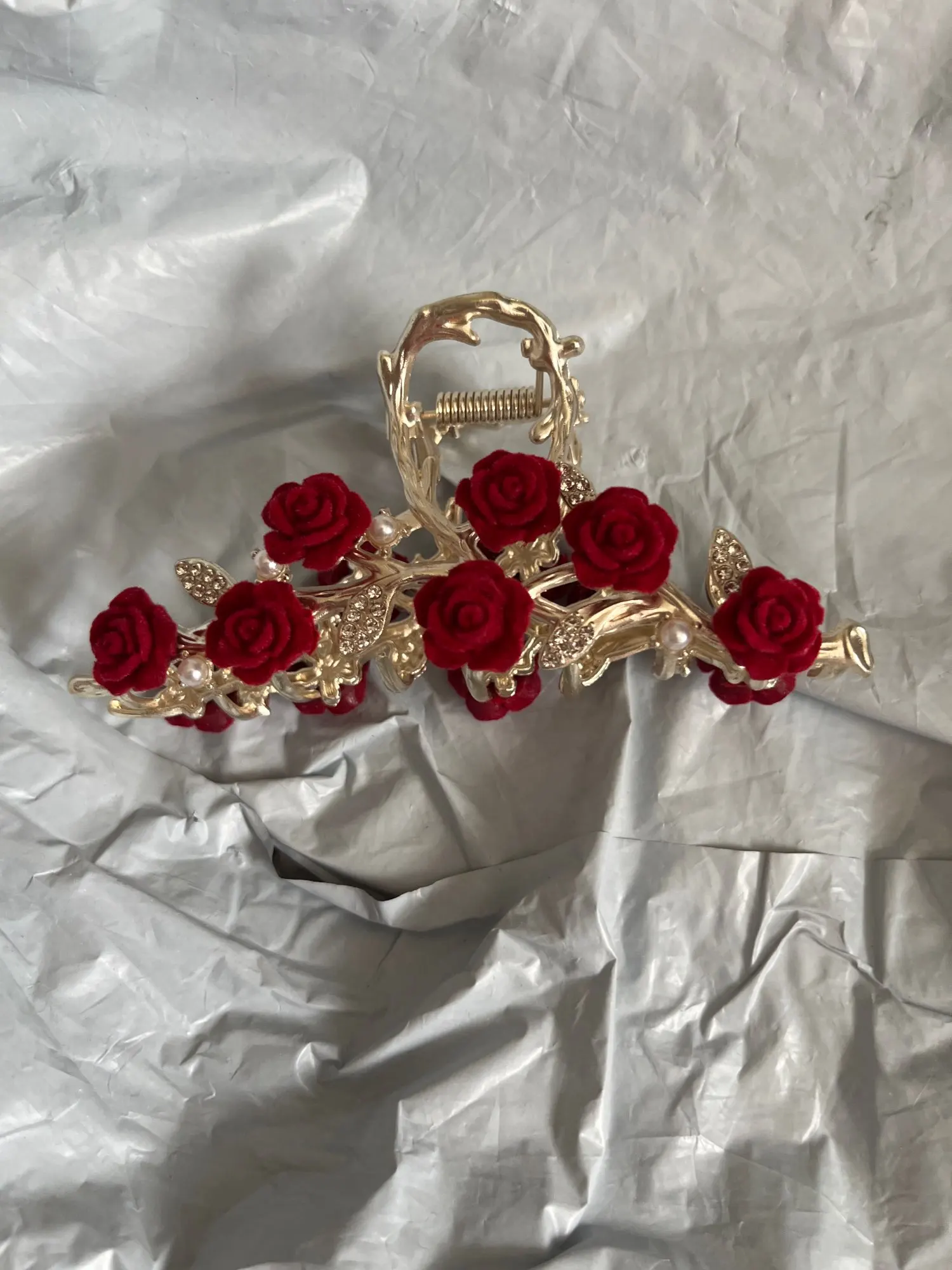 Add a romantic vintage touch to your hairstyle with this antique rose flower hair claw clip.