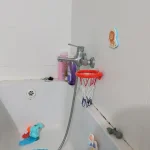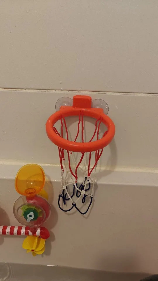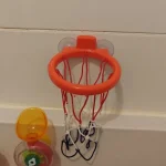 - Mini basketball hoop designed for bathtub and smooth surfaces
