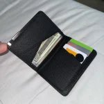 A sleek and slim business-style wallet made from durable faux leather. Designed with multiple card slots and a compact profile, it’s perfect for carrying credit cards, IDs, and cash without bulk.