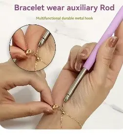 Put on bracelets faster and easier with this bracelet fastening helper tool designed to hook clasps without struggle. The slim stainless steel tool gives you better grip and control, making it simple to fasten or remove jewelry with one hand. Great for bracelets, necklaces, zipper pulls, and small craft tasks.