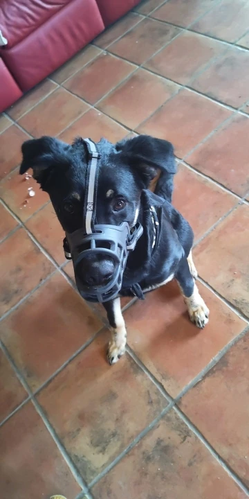 Everything perfect, flexible, good. I had to negotiate a treat so that he doesn’t move but stays well in place. My dog is 7 months old, a cross between a Beauceron, German Shepherd, and Labrador.