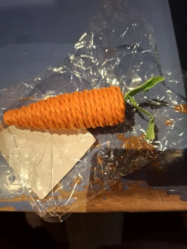A carrot-shaped interactive chew toy designed to keep cats entertained while supporting natural chewing and teeth cleaning. Made from bite-resistant paper rope and wood to encourage healthy play and reduce boredom.