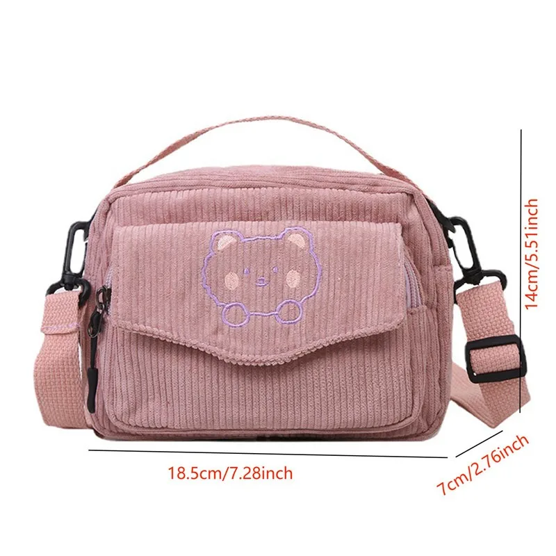 A compact and stylish crossbody bag designed for girls and students who prefer a simple, cute look. Made from soft corduroy with a canvas lining, it’s ideal for daily use, carrying small essentials with comfort and style.