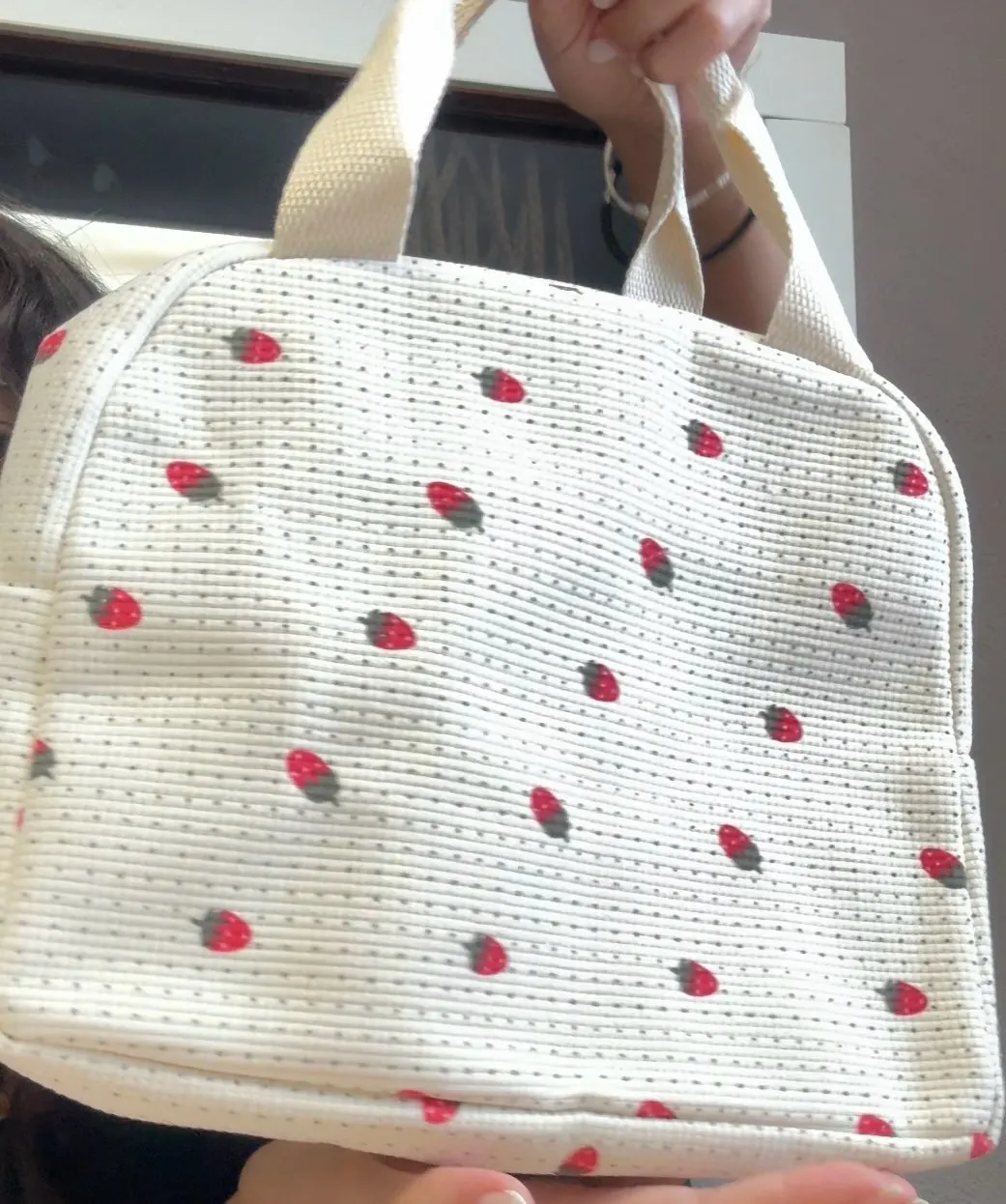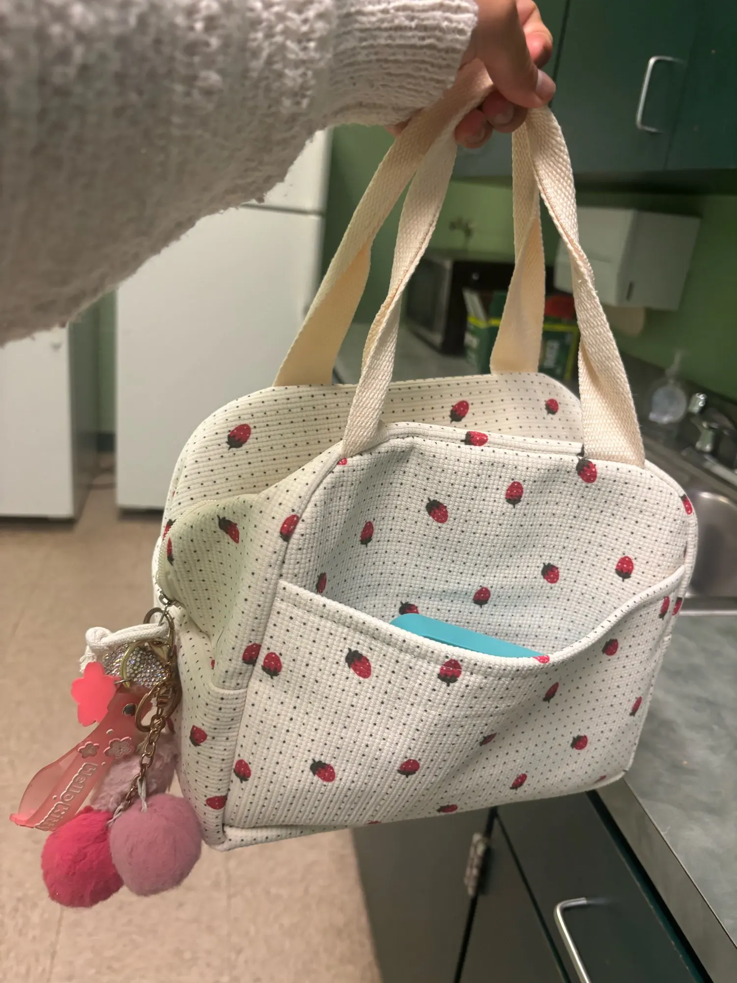 The lunchbox is beautiful, very spacious, and has a front pocket.💗💗💗