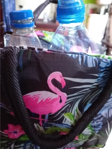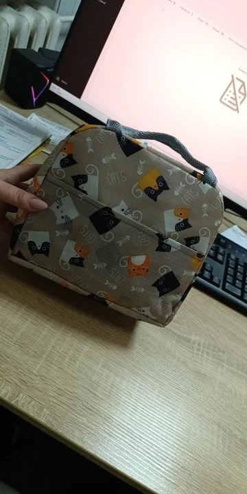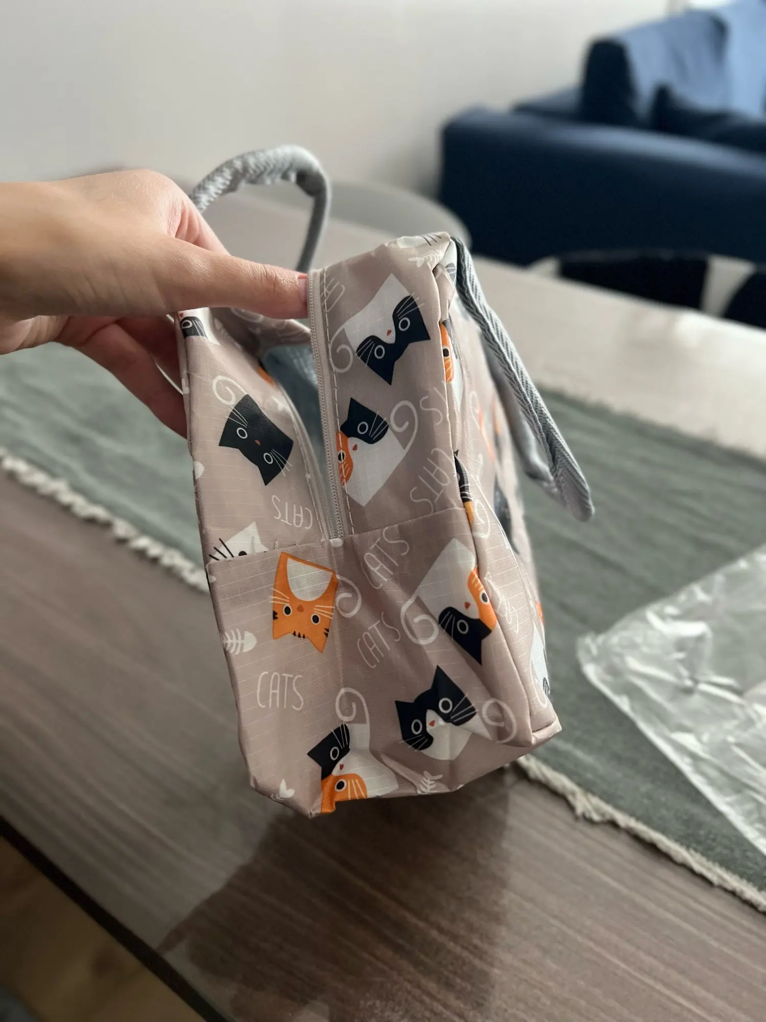 Great lunch bag. It’s good for sandwiches. But even small bottles of drink won’t fit because you can’t close the zipper. If you lay the bottle flat, it’s okay. The bag is made of good quality materials. Sturdy stitching. I can recommend buying it. For me, it’s enough.