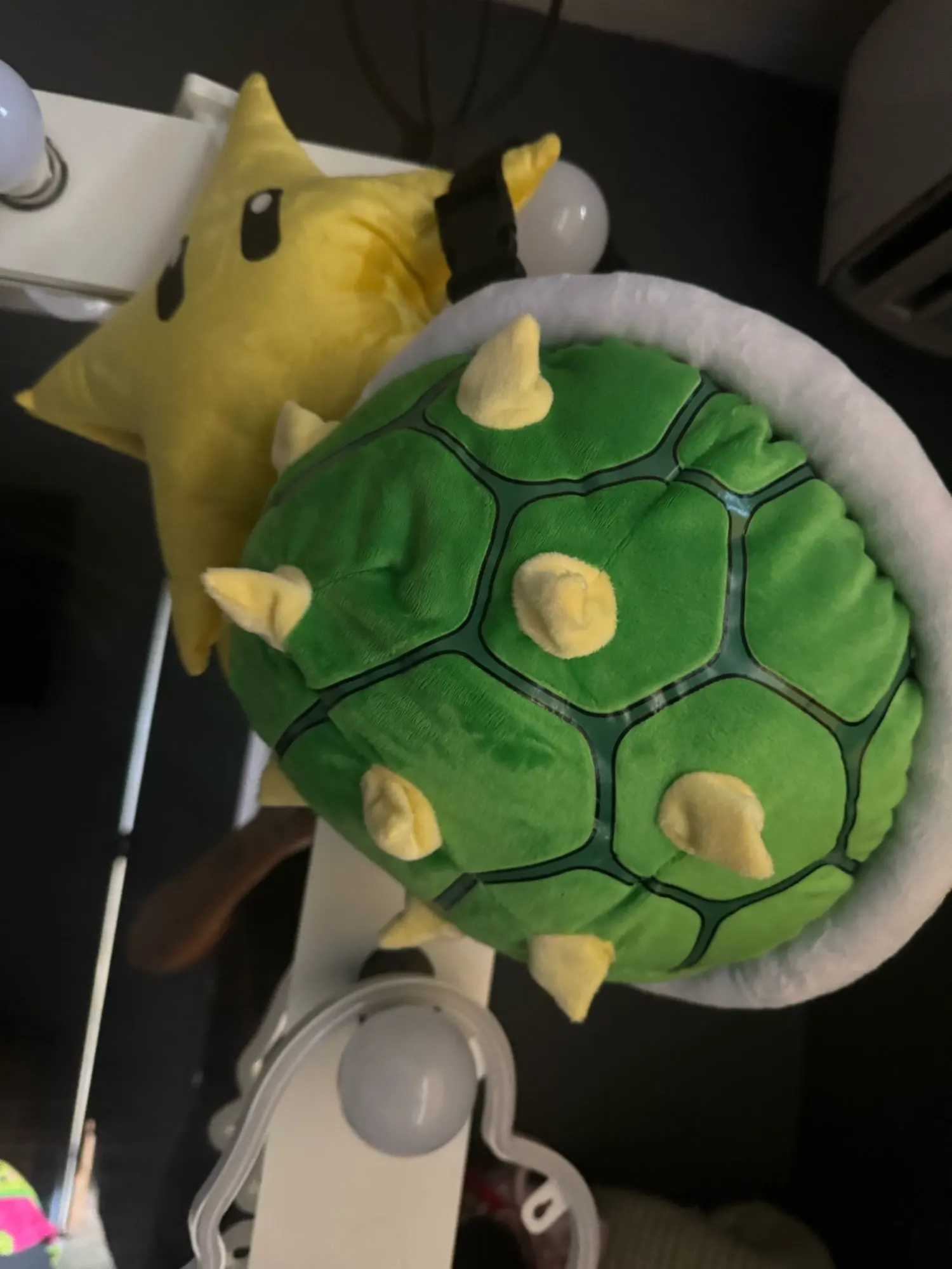 Plush Bowser shell. Perfect for costume, can be worn like a backpack and then serves as a cushion.