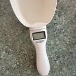 Very practical and precise. You have to get used to using it: turn it on and hold it by the handle until it reads zero, take it by the scoop and load the feed from the bag, hold it again by the handle and read the weight. Easy, but if you carry by the handle you could force it and break it.