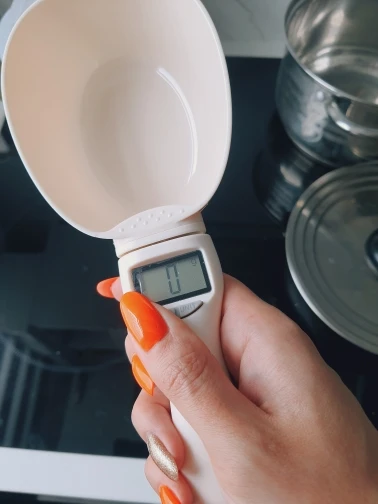Measure pet food accurately with this digital measuring spoon featuring a clear LCD display. Designed for precise portion control, it helps maintain a balanced diet for dogs and cats while also working as a handy kitchen tool.
