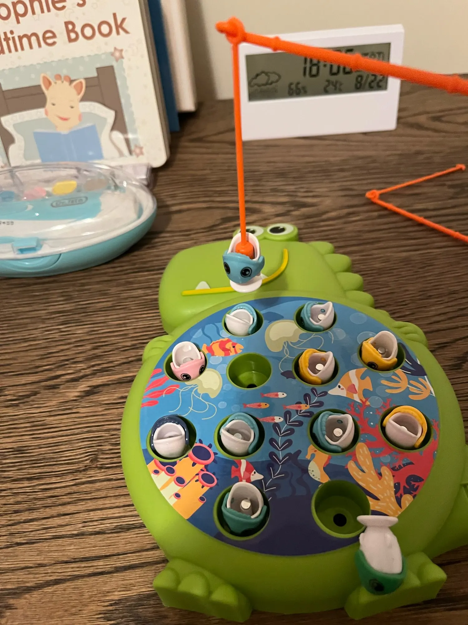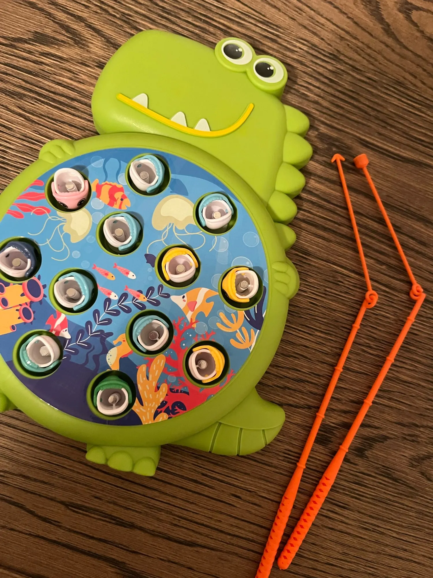 - Magnetic fishing rod and dinosaur pieces