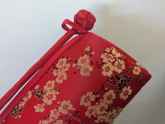 Excellent. Super fast shipping and great quality. It’s just like the photo, the fabric is embroidered and has a beautiful very intense red. It’s small but with space for a phone, keys, etc. Just what I wanted.
