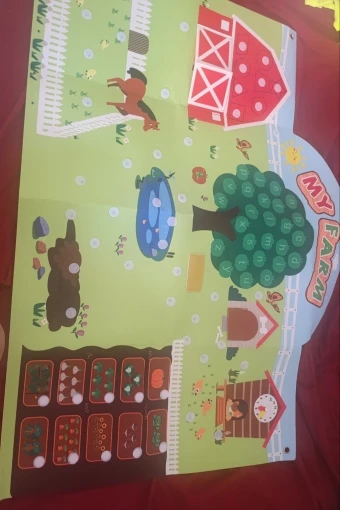 It’s very good, especially since he likes Zenón’s farm. It has the alphabet, numbers, shapes, and animals well attached as well so he can attach the animal signs. It won’t let me upload more photos.