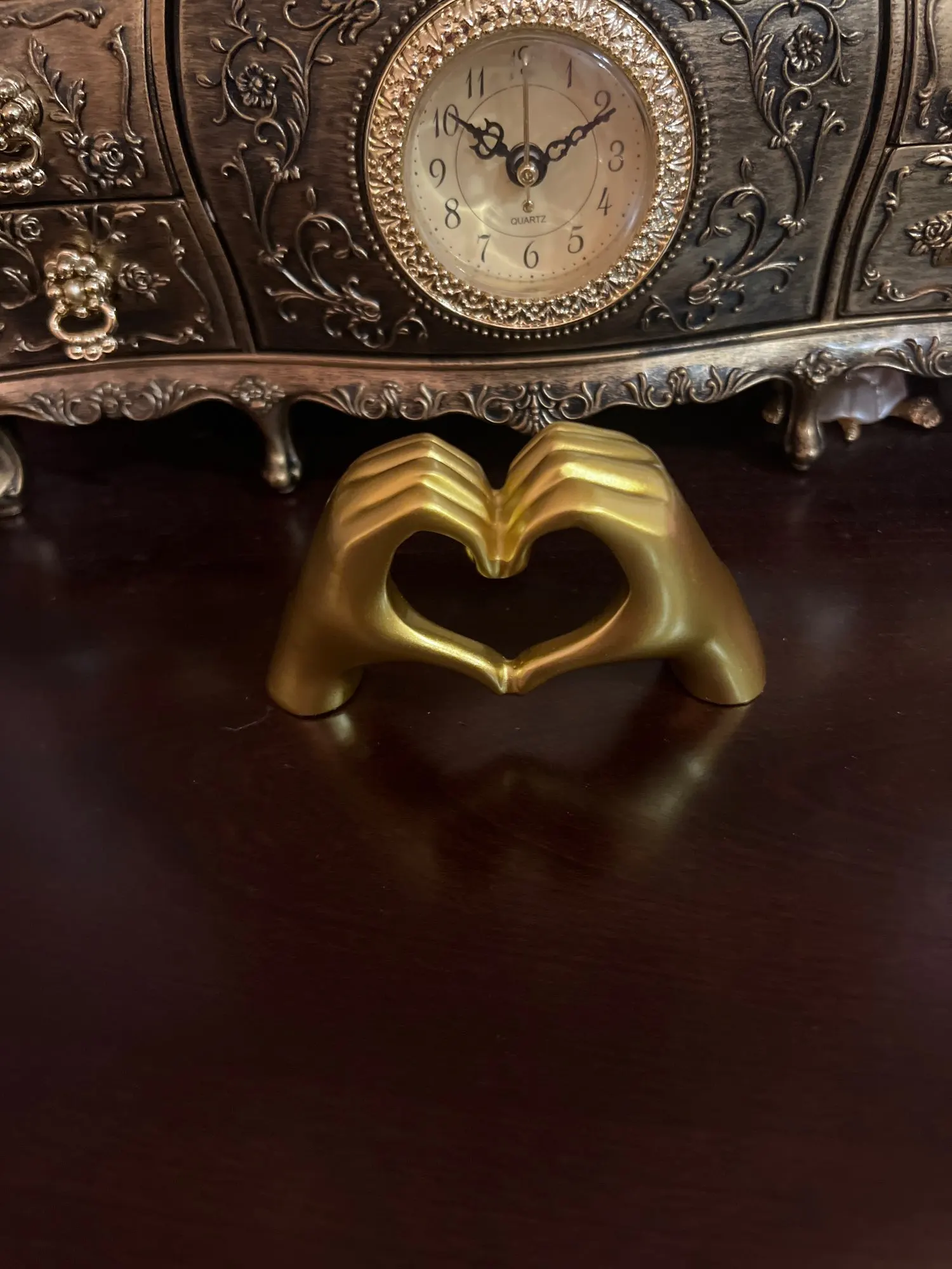Add a touch of elegance and warmth with this gold-toned heart hand statue inspired by classic European design.