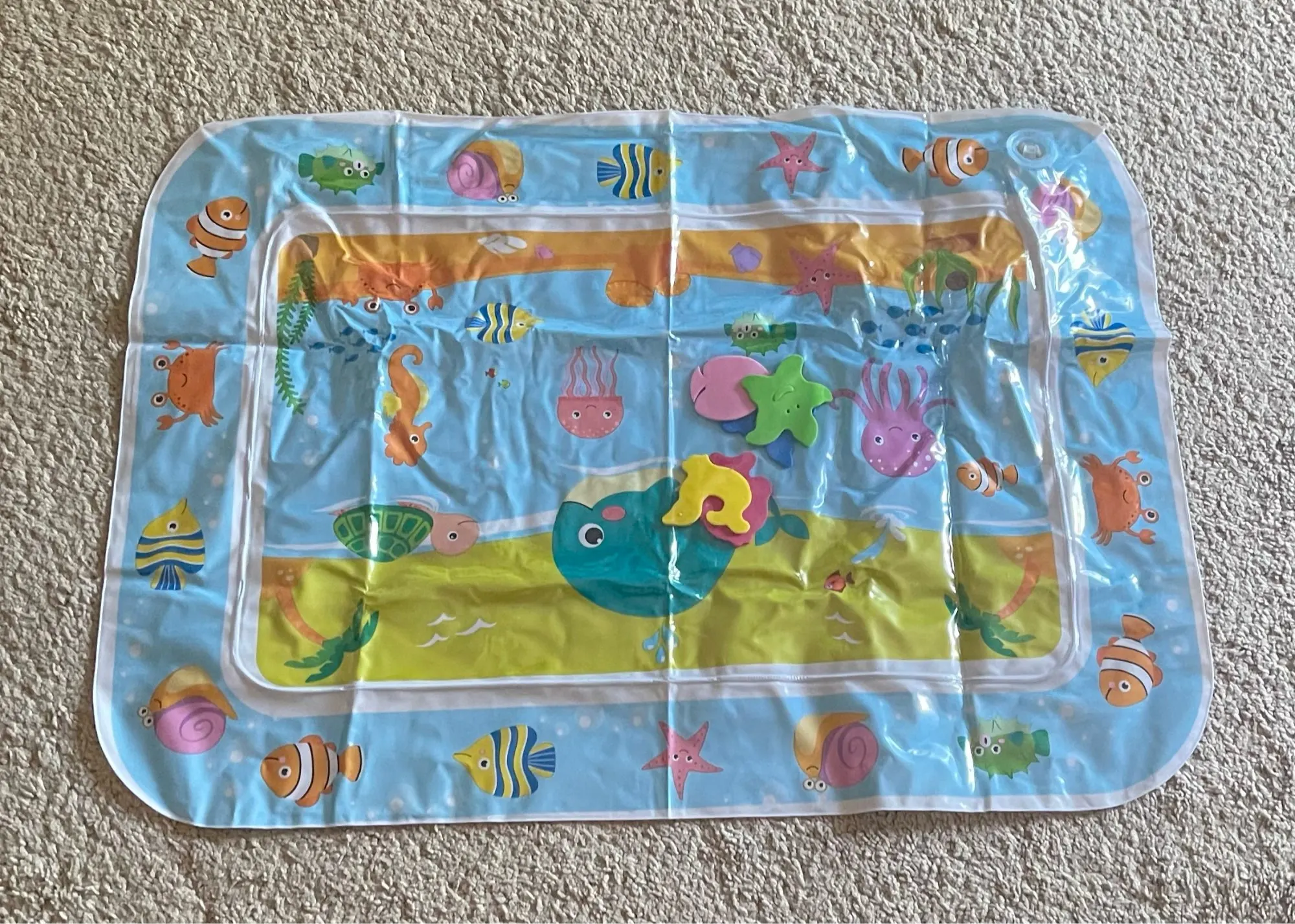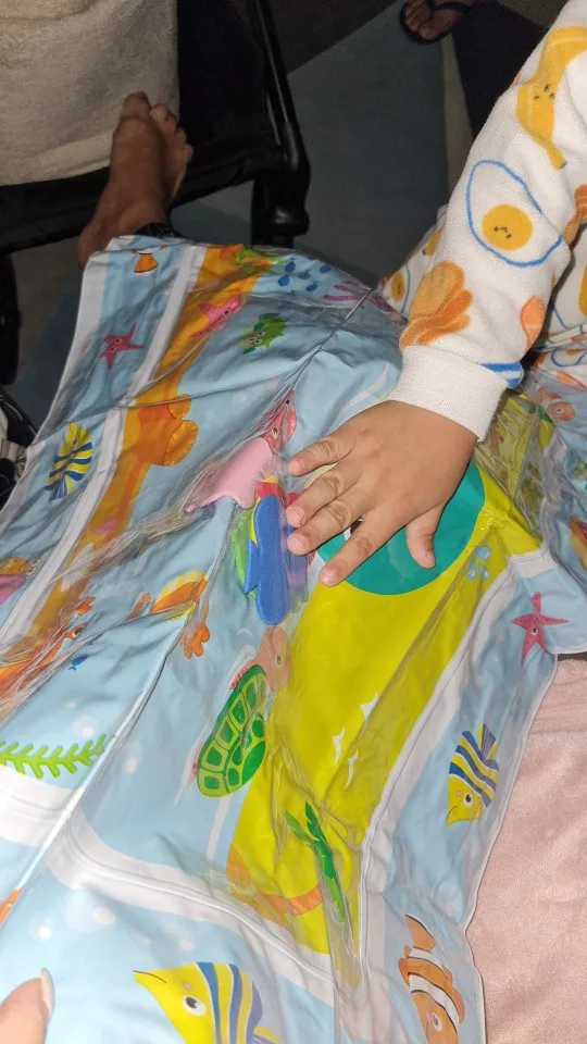 An inflatable water play mat designed to make tummy time fun and engaging for infants and toddlers. Filled with colorful floating shapes, it encourages movement, sensory exploration, and early motor skill development through interactive play.