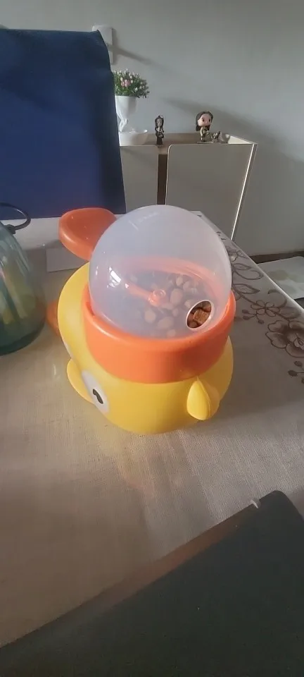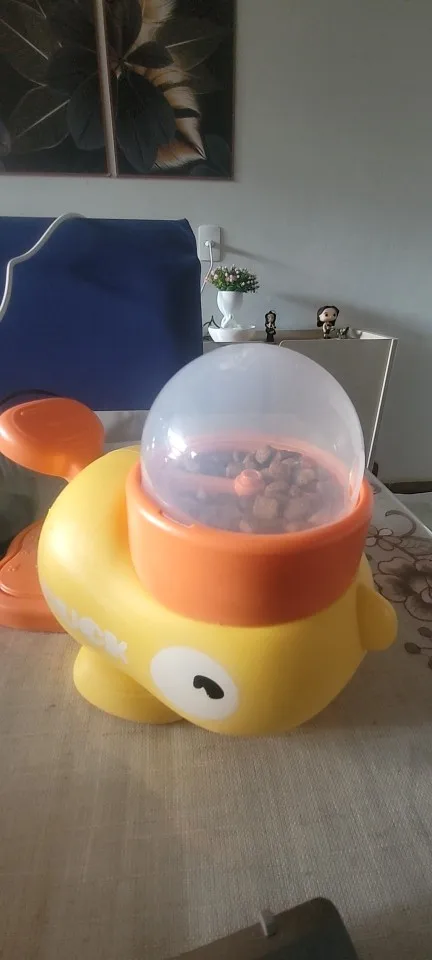 A fun interactive duck-shaped pet feeder designed to turn mealtime into a rewarding puzzle. Pets press the handle to release treats, encouraging problem-solving, slowing down fast eating, and providing mental stimulation for dogs and cats during daily feeding or training sessions.