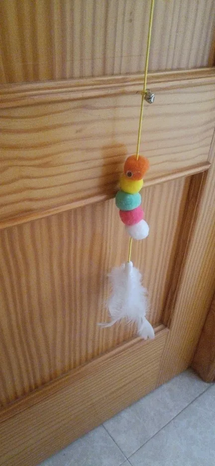 I didn’t see it well when I bought it, I thought it came like the mouse with a metal piece to hang it on the door, but it only comes with a small piece that sticks and the cat tears it off.