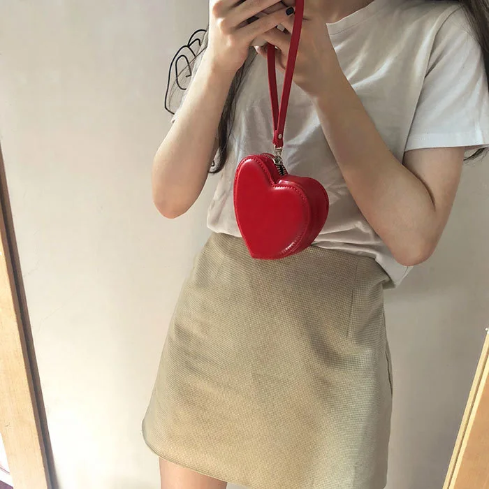 A cute heart-shaped wallet made from soft PU leather, designed for everyday convenience and style. Compact yet spacious enough for coins, cards, and small essentials. Perfect for casual outings, gifts, and kawaii fashion lovers.