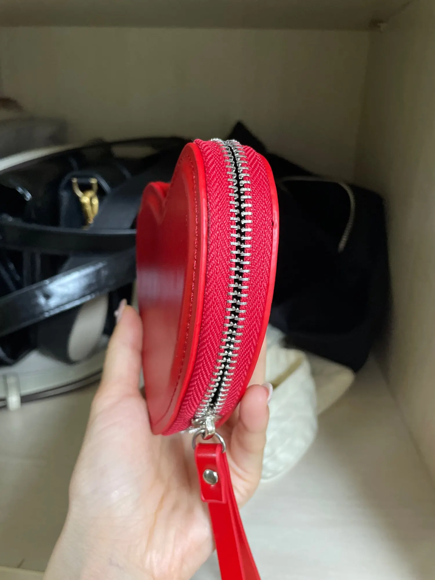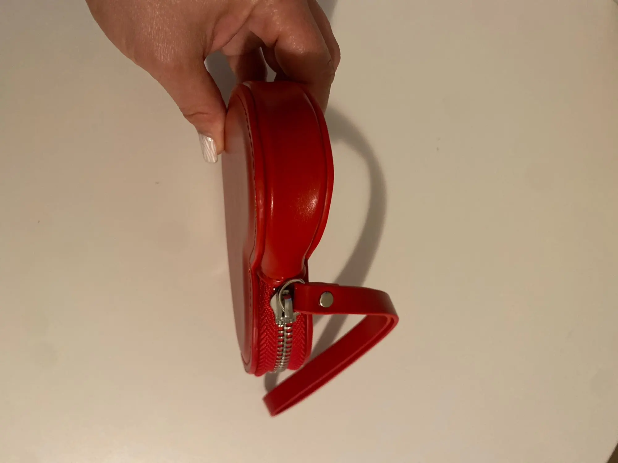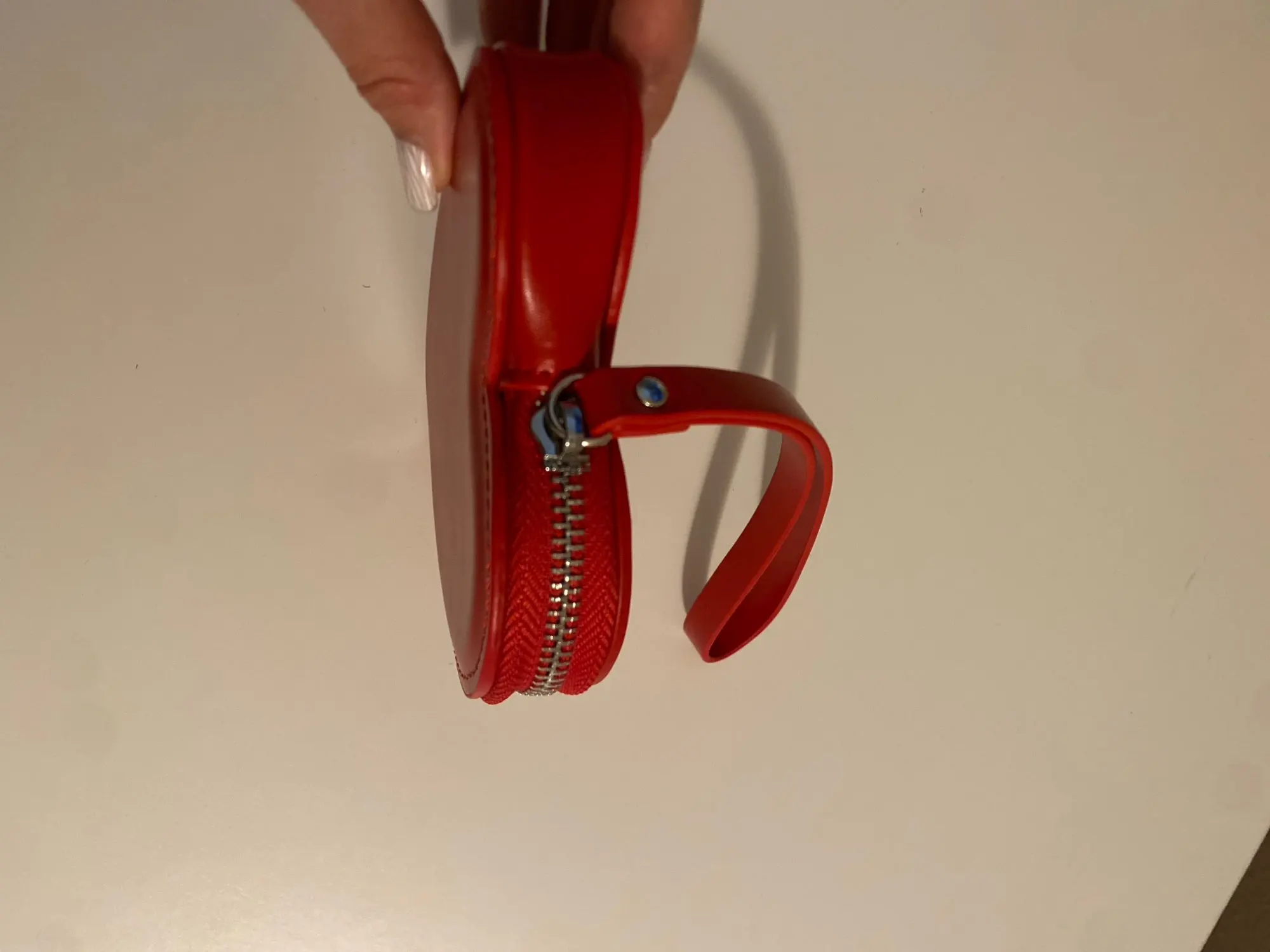 Very red / Very sturdy / Strong stitching / Perfect as a decorative point / Sturdy / The zipper is smooth.