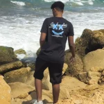 A good, spacious backpack that seems well stitched. It will be visible when worn.