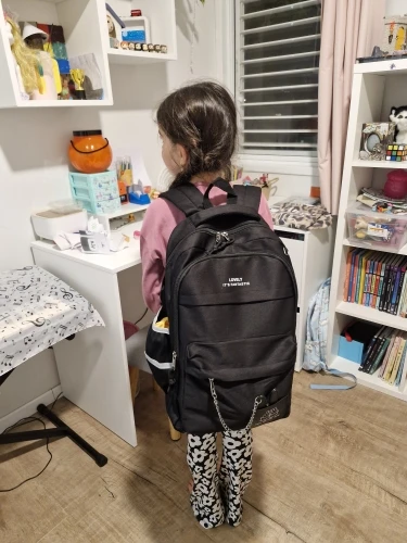 A lightweight and waterproof school backpack designed for primary school girls. Spacious and practical, it easily carries books, notebooks, and daily essentials while offering a cute and comfortable design for everyday school use.
