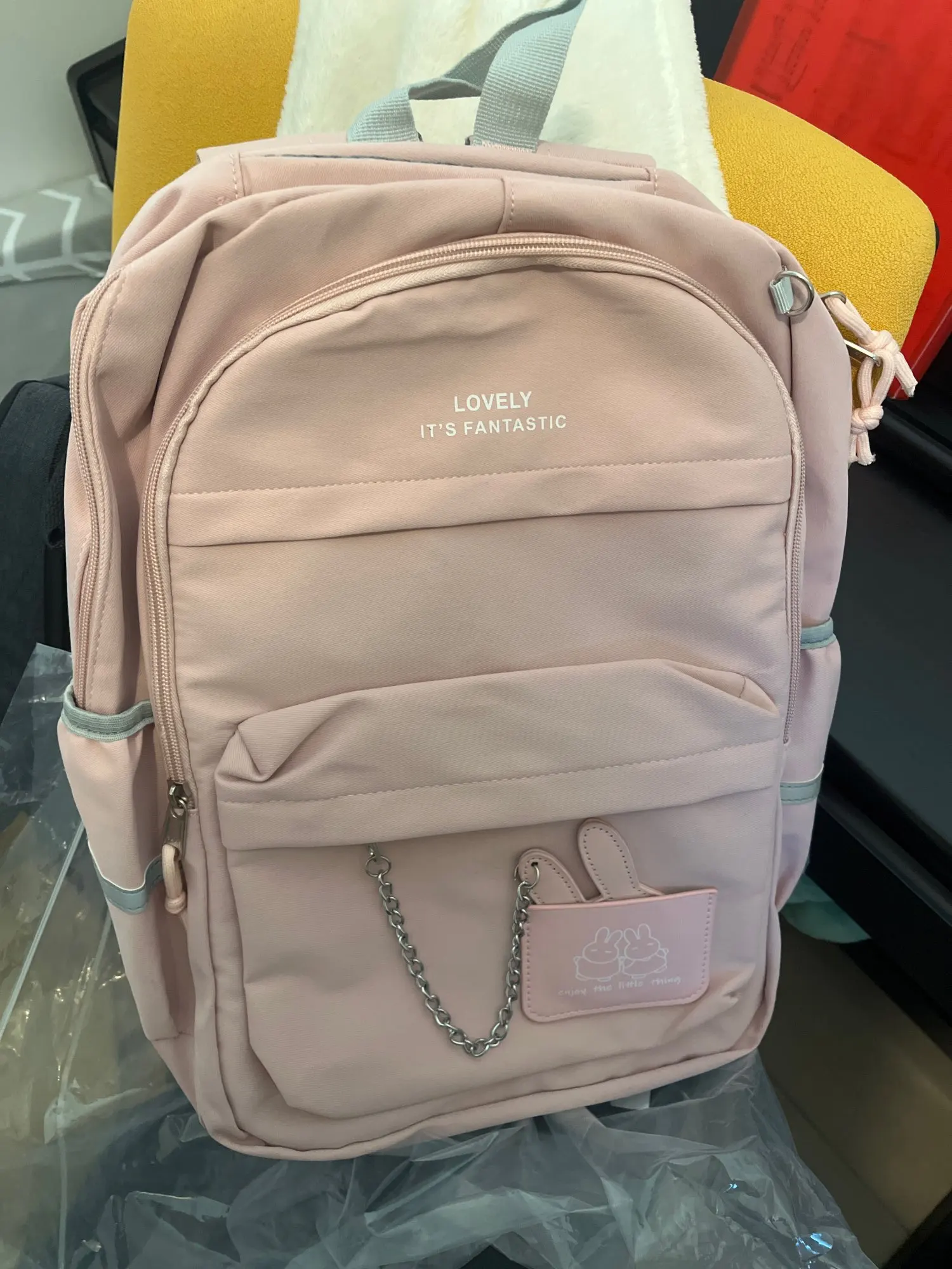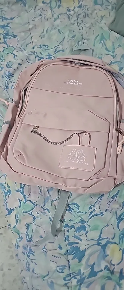 Super cute and has a lot of space! Camera is a bit blurry but the colour is exactly like the picture(pink) :3 totally recommended! ♡