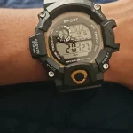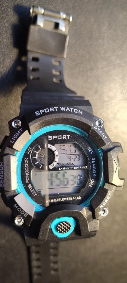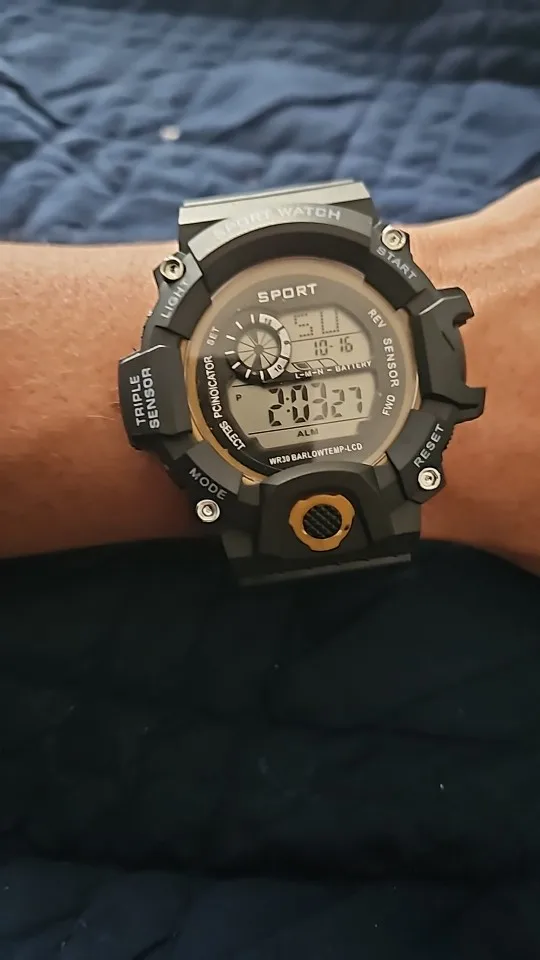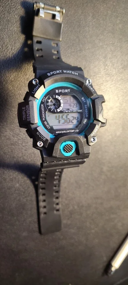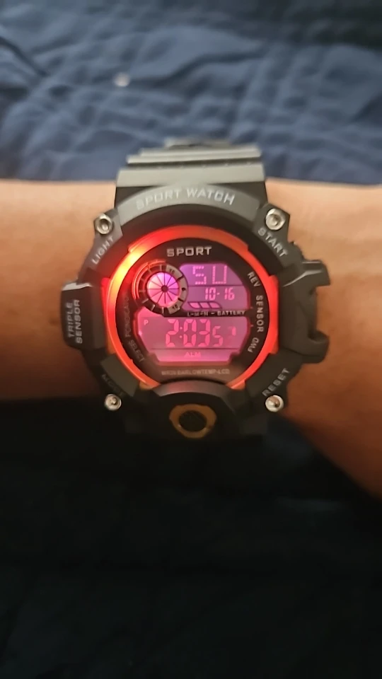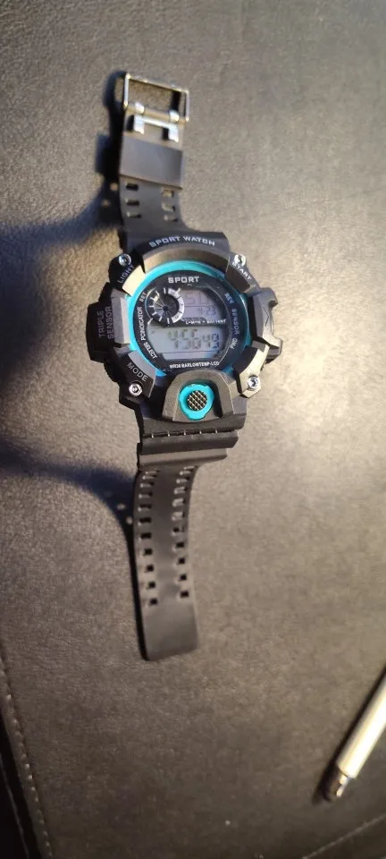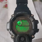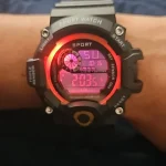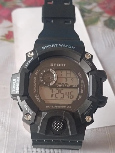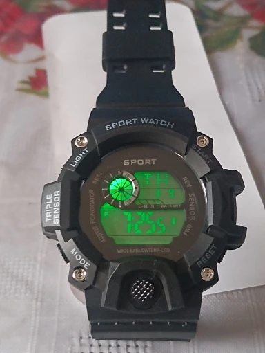 A digital sports wristwatch with a large dial and multifunction LED display. Features luminous backlight, alarm, stopwatch, and shock-resistant design. Built with a rubber band and suitable for daily and sports use.