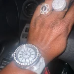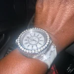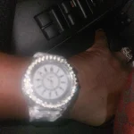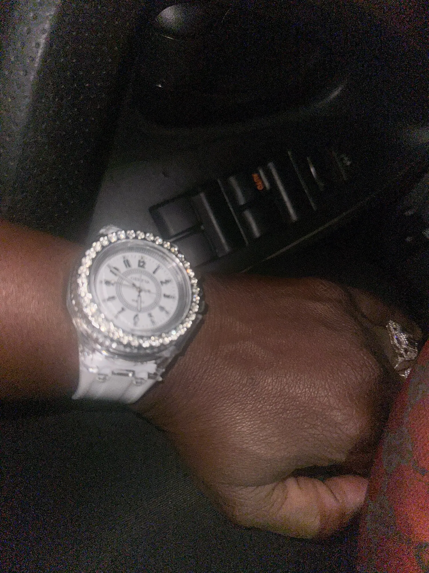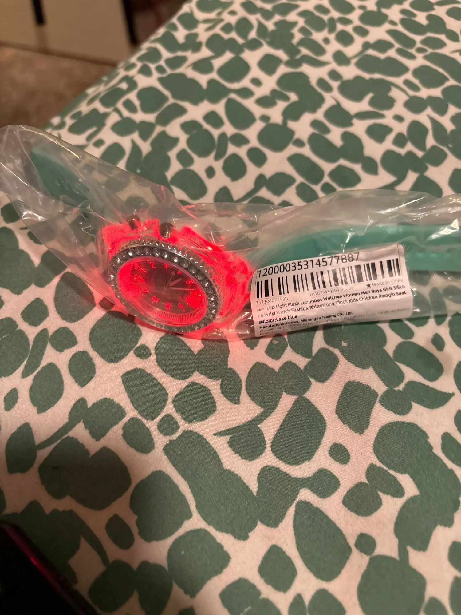 The led is cute. Flashes and blinks a few times in different colors. And if you pay close attention to the dial you can kind of read the time, though the lights are as distracting as they are helpful. And then there’s the “bling”. It’s “iced out”, isn’t it? Wouldn’t that be an ingenious way to smuggle real diamonds? No one would suspect the rubber child’s watch. Hahaha