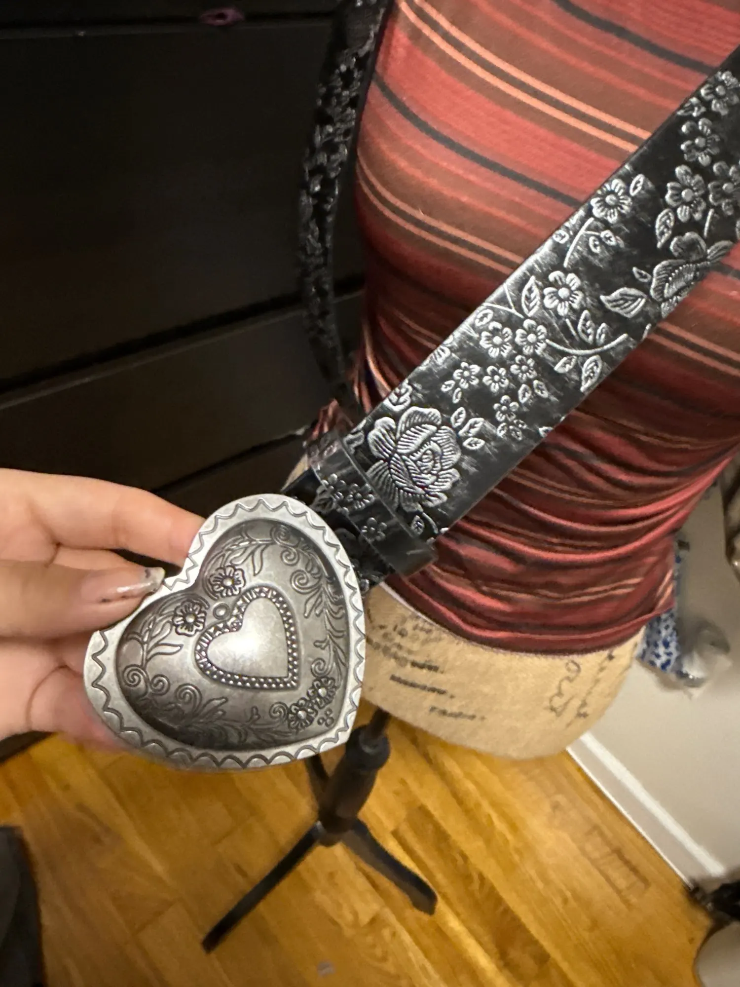 It’s a very cute belt the only thing is the heart is a bit too big for my liking but i’ll still wear it