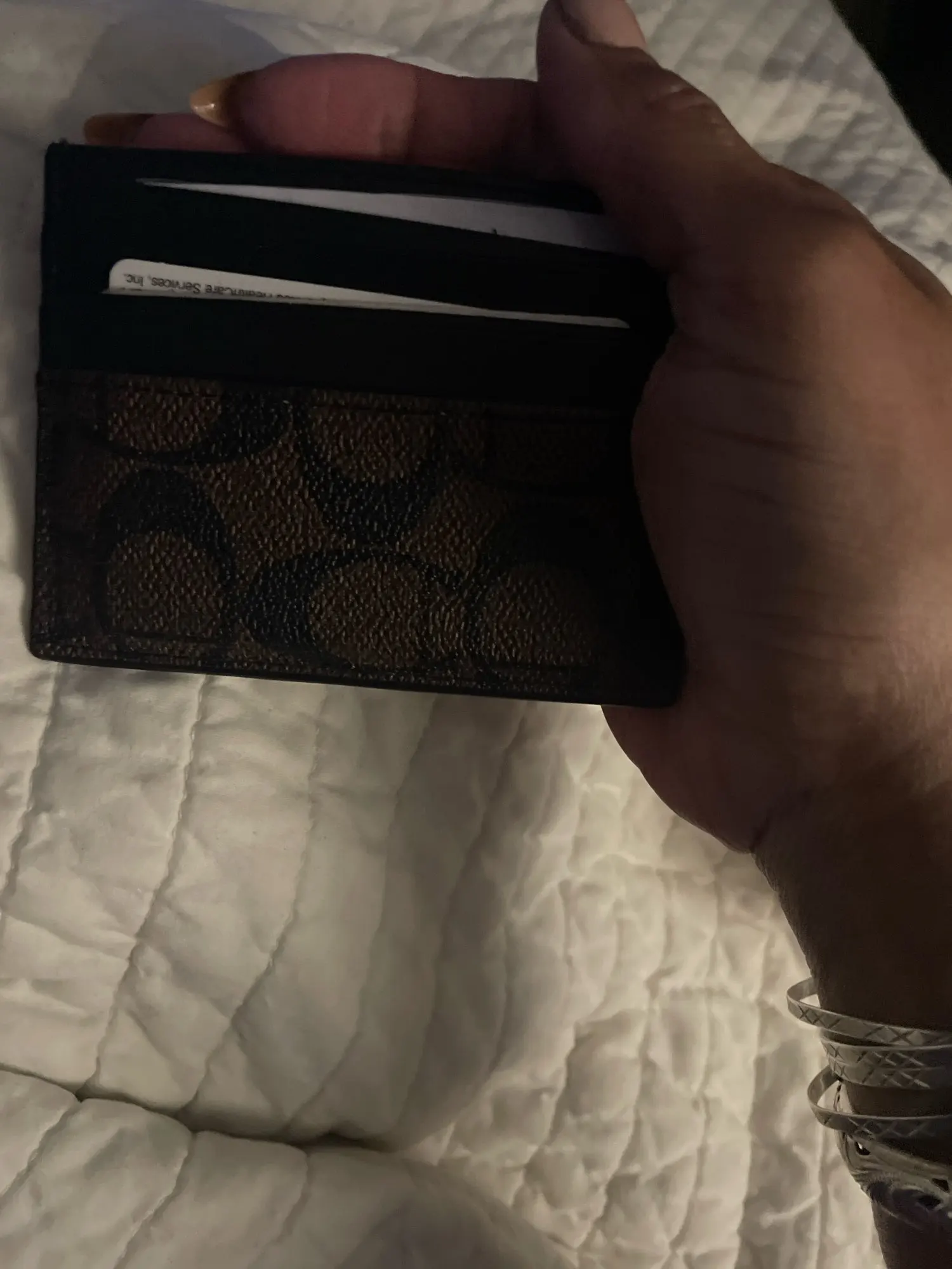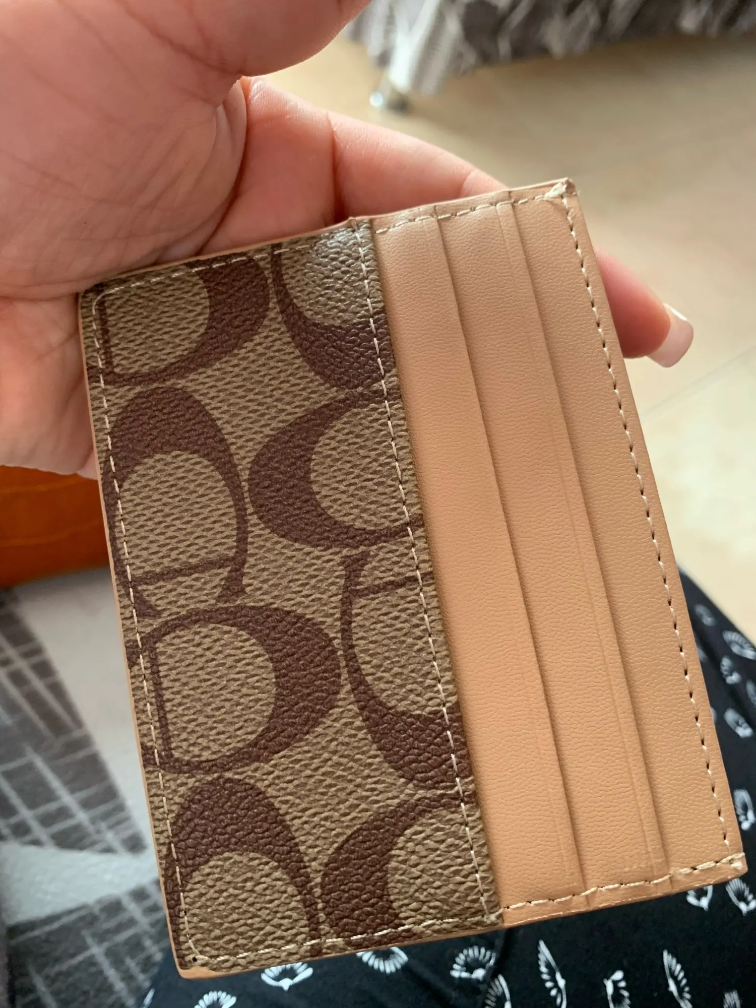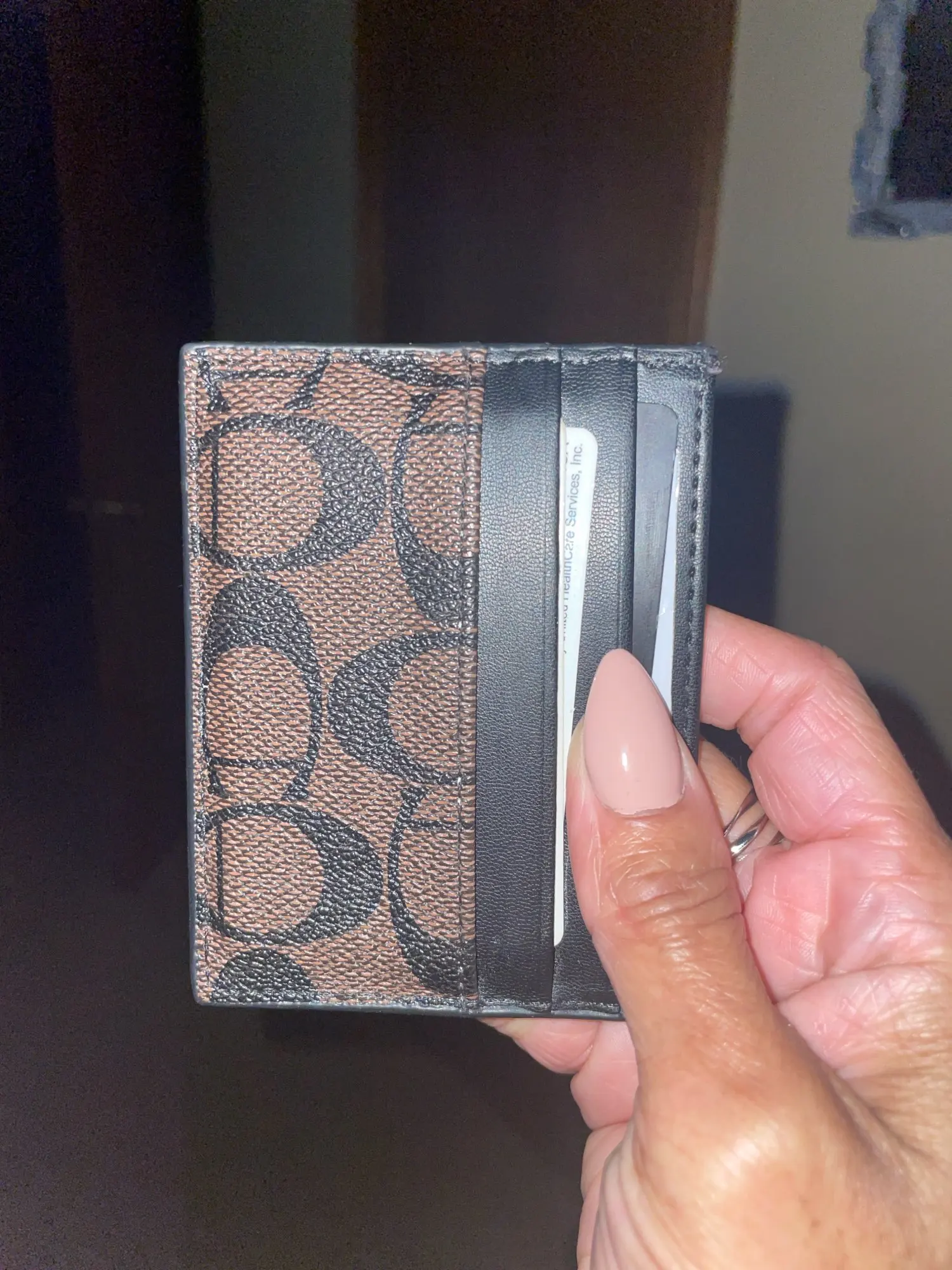 Looks very good and is very satisfied with the quality of the card holder.