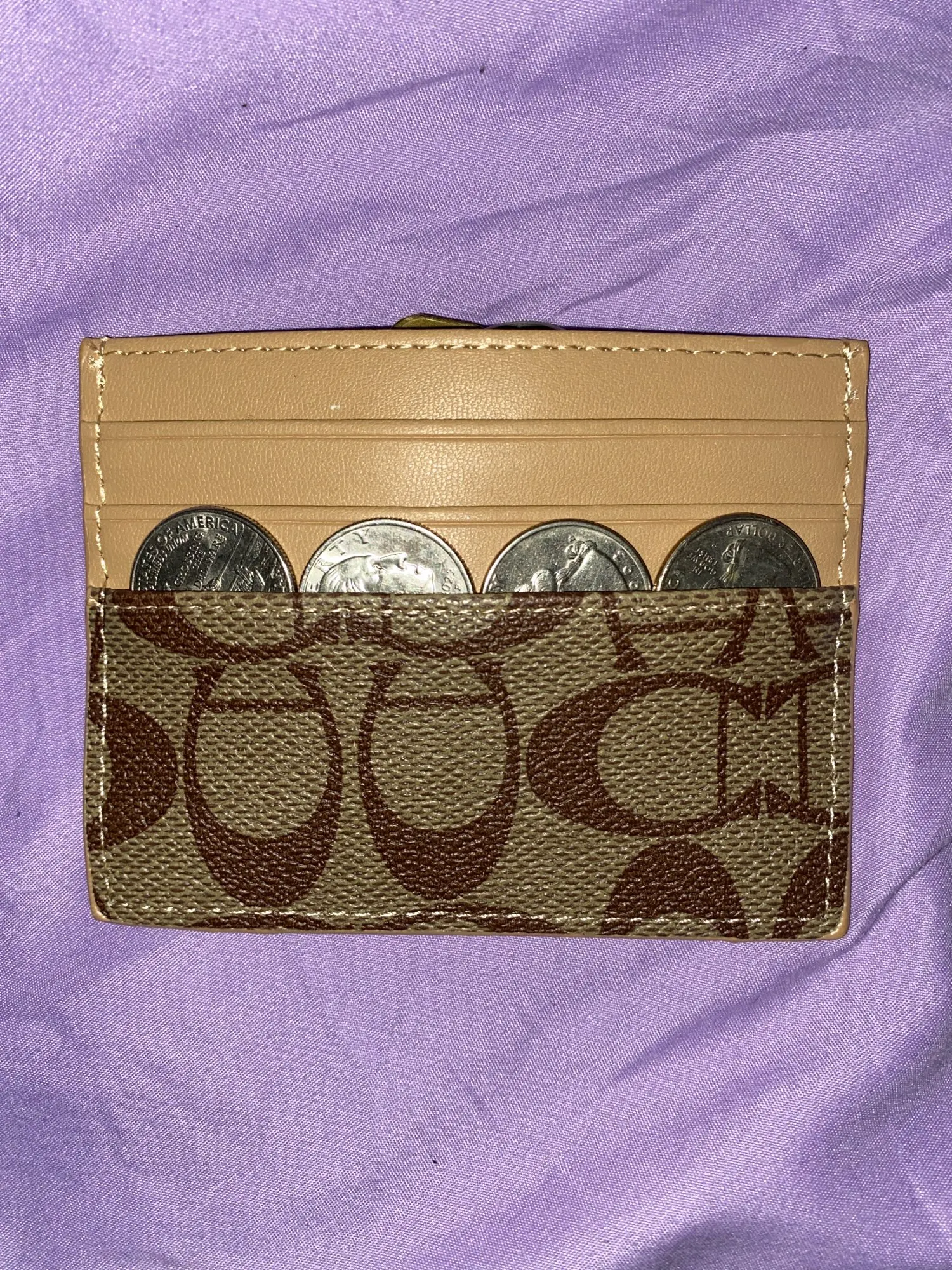Very cute and looks really nice. Has 6 slots in for cards, plus middle for change and bills.