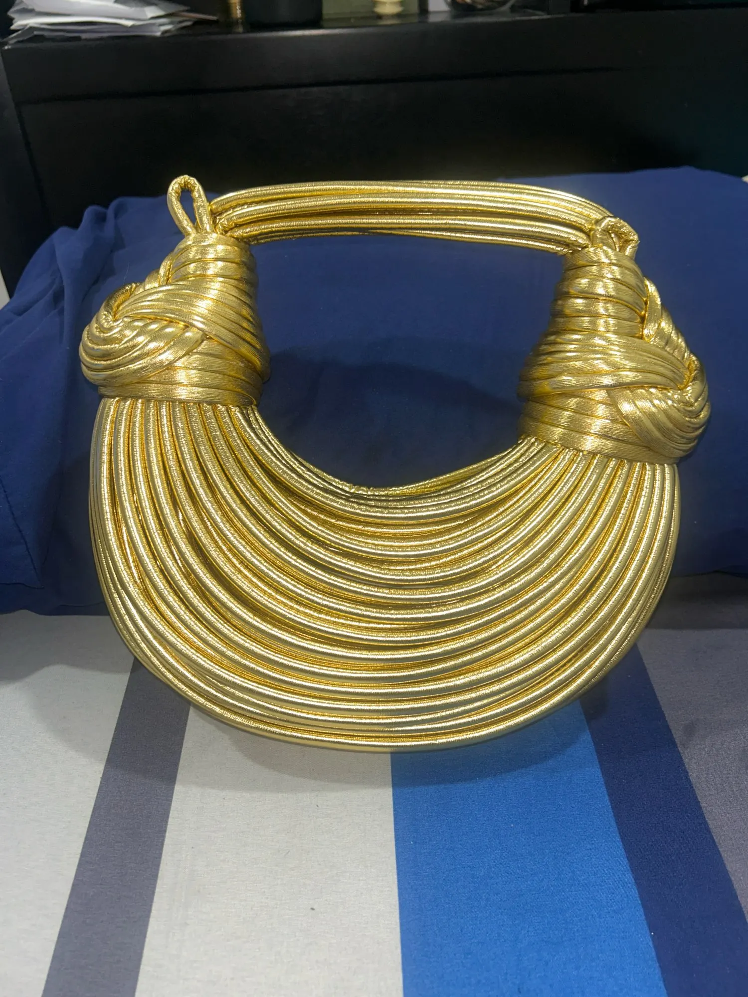 Turn heads with this chic gold woven knot hobo bag designed for modern 2025 fashion. Made with a soft PU finish and a stylish handwoven “noodle” look, it’s perfect for parties, dinners, and everyday glam. Lightweight, trendy, and easy to carry as a shoulder bag or hand bag.