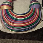 I love this multi-color handbag! Material is of great quality. There is weight to the purse. I just wish that i could fit my phone inside. This handbag is definitely a “statement piece!” I love it so much, i may order the black & white color next!