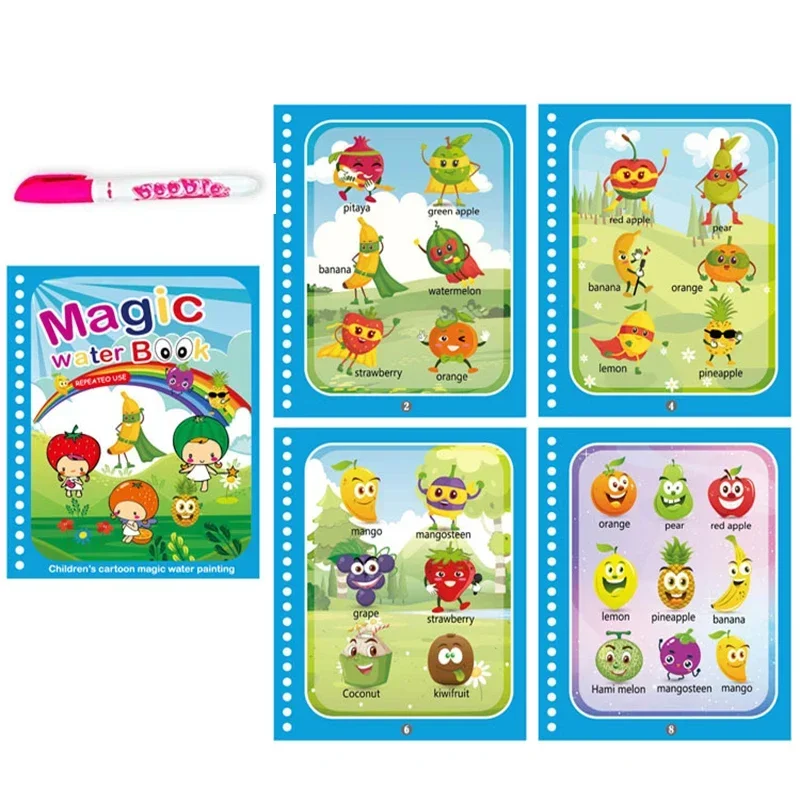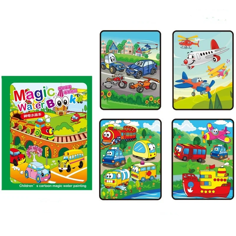 A reusable magic water drawing book designed to spark creativity and early learning. Kids use the water pen to reveal colorful pictures that disappear as they dry, making it a clean and mess-free activity. Perfect for quiet play, travel, and everyday learning fun.