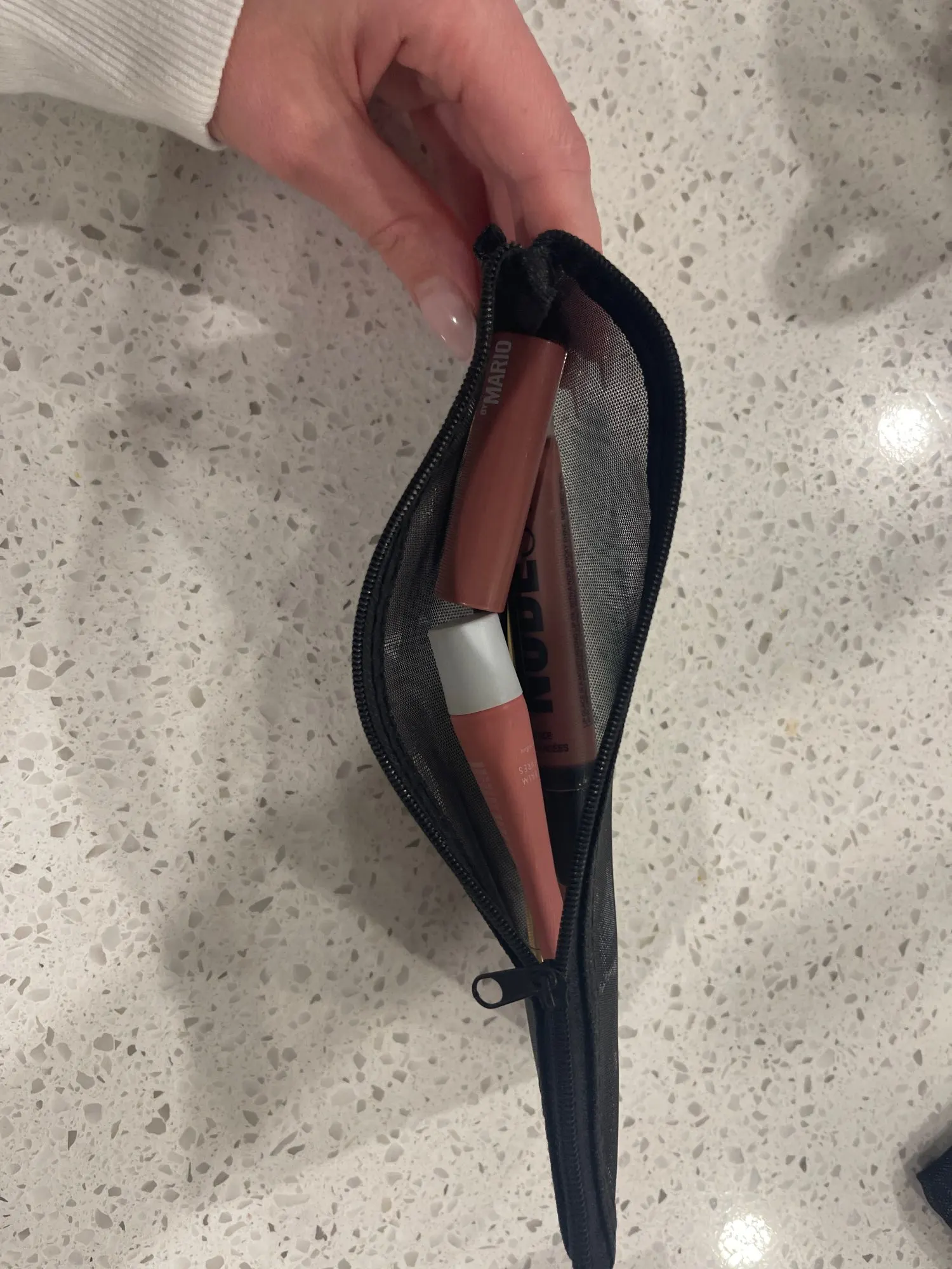 A very convenient small cosmetic bag! 🌸 Made of mesh – lightweight, compact. Perfect for storing makeup brushes, small cosmetic items, money or even glasses. Convenient to take with you in a bag or on a trip. Stylish, practical, and versatile – just what you need!