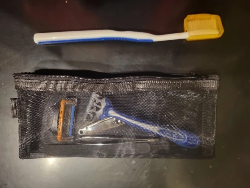 I use this to hold travel toothbrush, razor etc because TSA requires liquids like shampoo and shaving cream in a small plastic bag. So it it is no longer practical to put toiletries in one dopp kit or shaving kit. webbing on both sides allows damp toothbrush, razor, hair brush to dry without mold.
