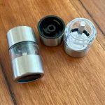 The grinders came very well packaged in collective packaging, but in individual boxes to protect them. The quality of the material is impeccable. The finish is all perfect. However, since it’s a glass piece, I found the fit of the two metal parts in the glass easy to break and hurt someone.