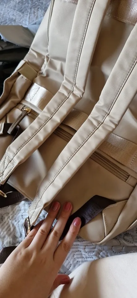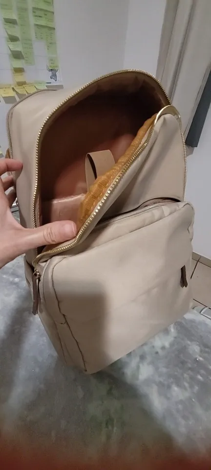 beautiful! I thought it would be a little larger, but things can fit for a 1-day trip, for example. The space for the notebook fit my computer perfectly (14″). Good material and perfect finishing.