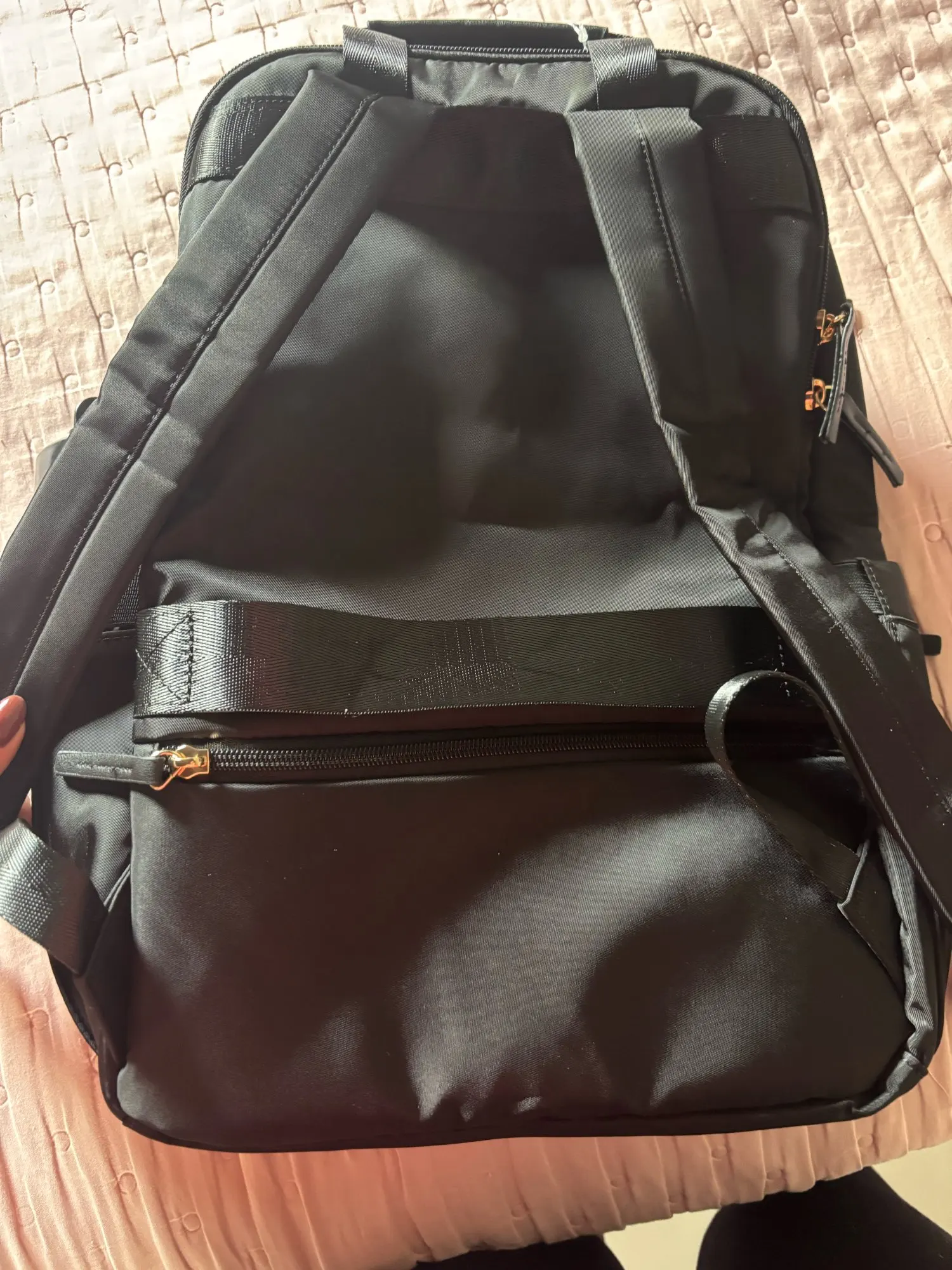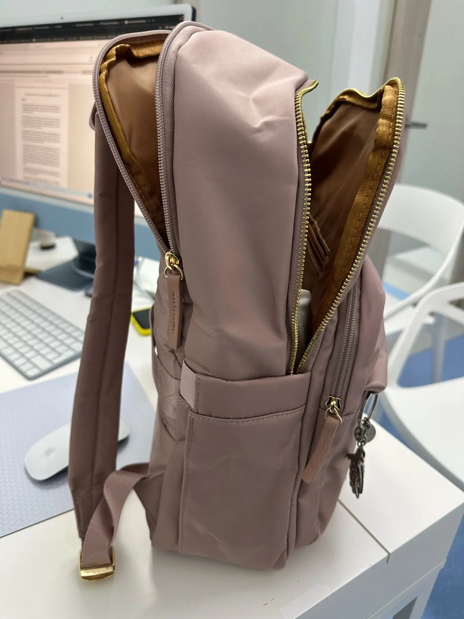 I’m pleasantly surprised with the item quality. Many pockets of different sizes to sort things perfectly in the backpack. It will be my go-to-work bag from now on! (badges are mine)