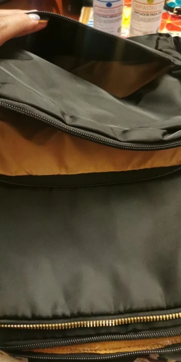 very good quality, thick fabric, the zipper looks good at first glance. Waterproof, many compartments, very functional!! There are many things inside in the photo, however, everything fits and no defects are formed.
