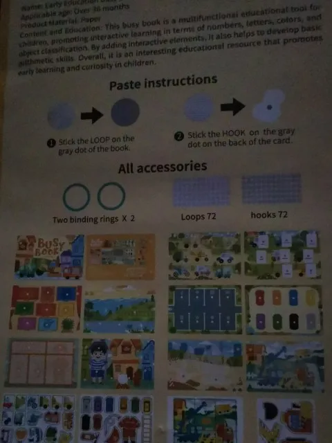 The book is very good, especially for 3-year-olds. It’s a bit tedious to assemble if you buy more than one, but it’s perfect. The velcro/stickers are not very strong. But it’s worth it for the price it has.