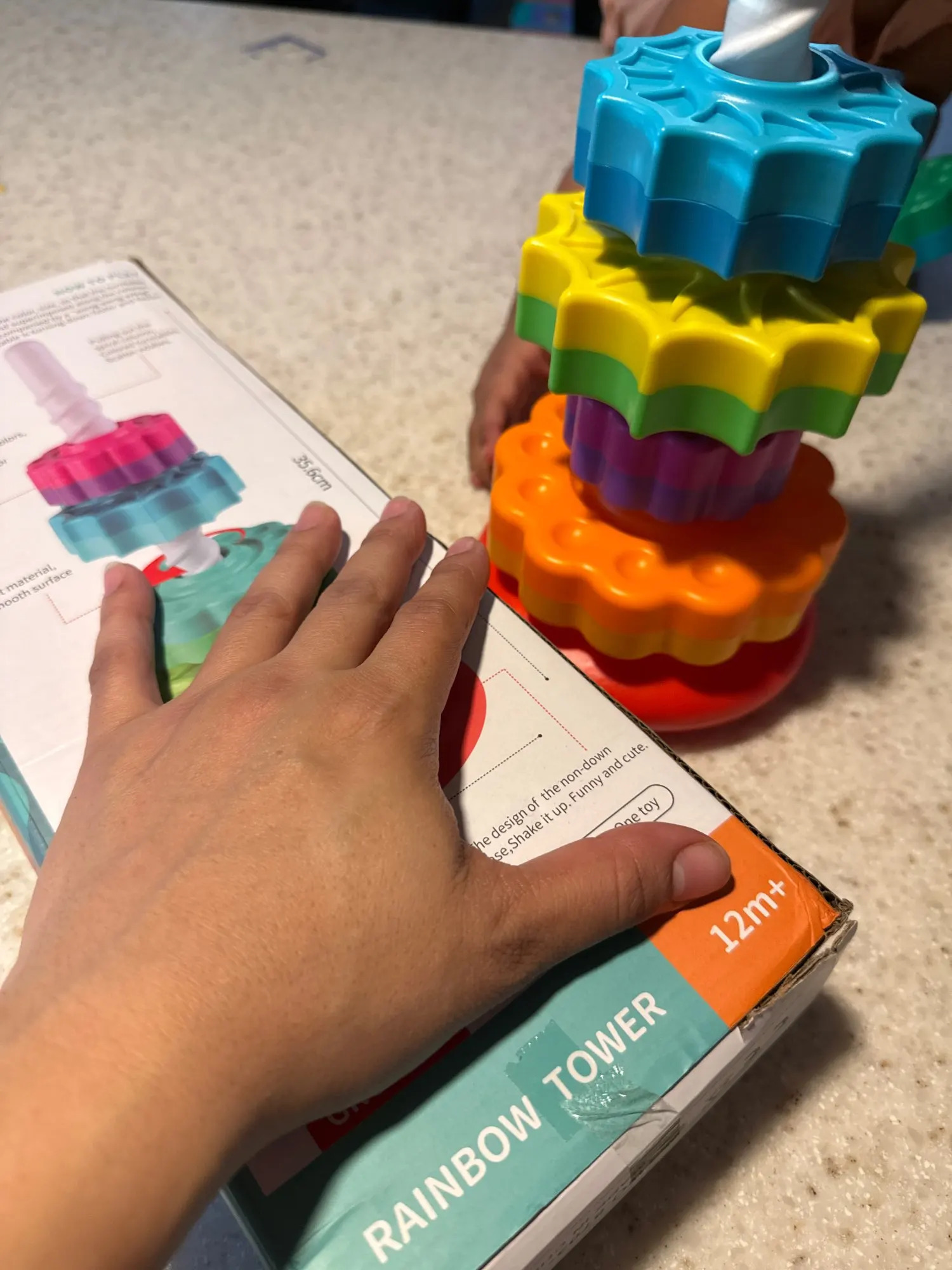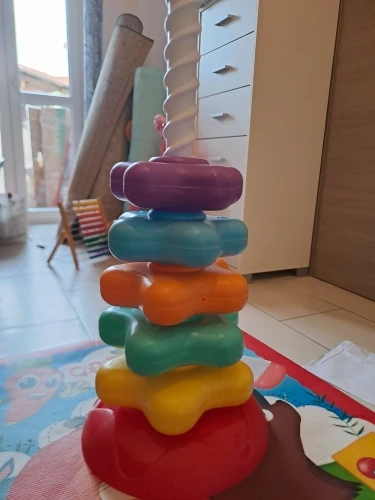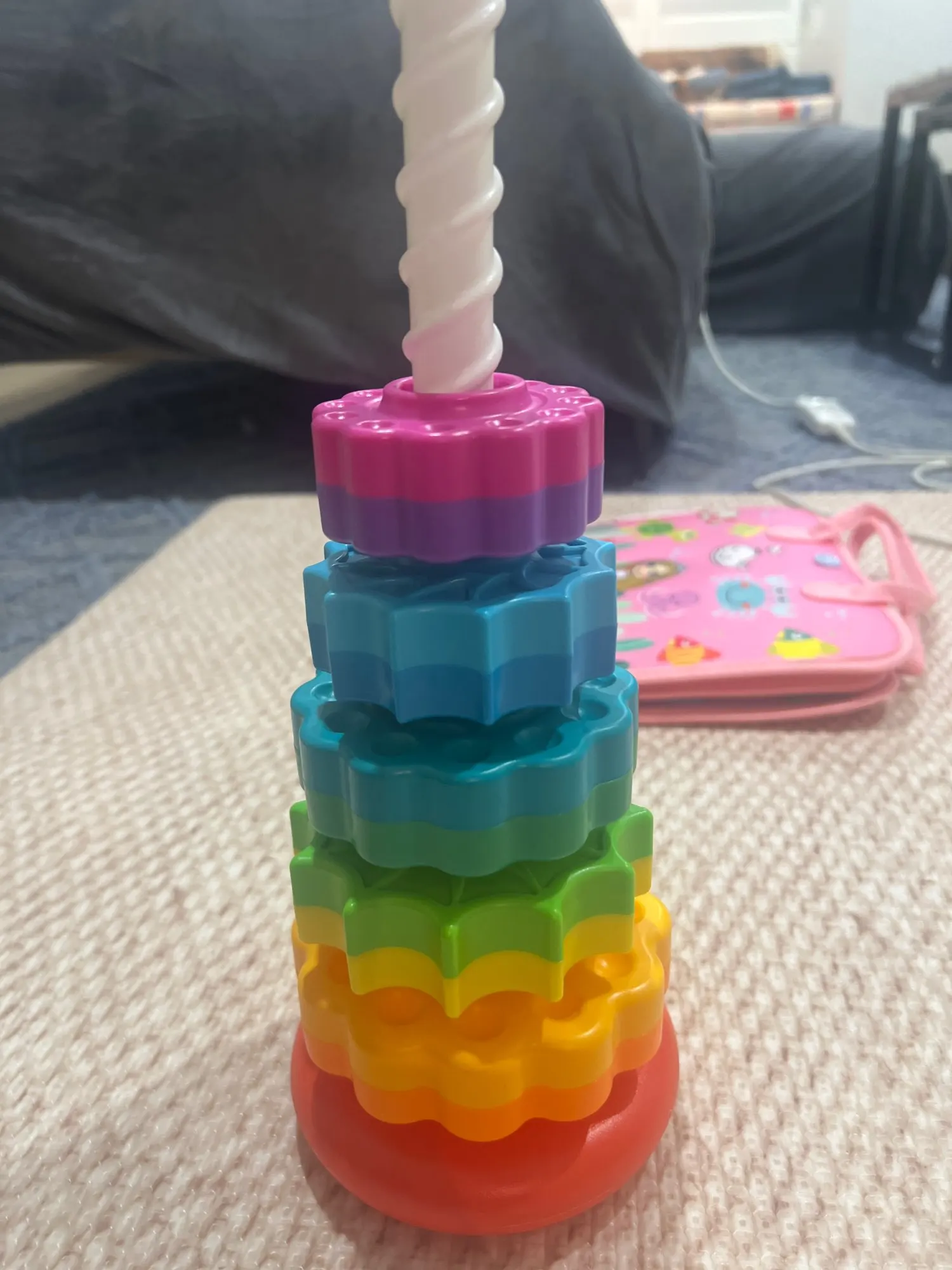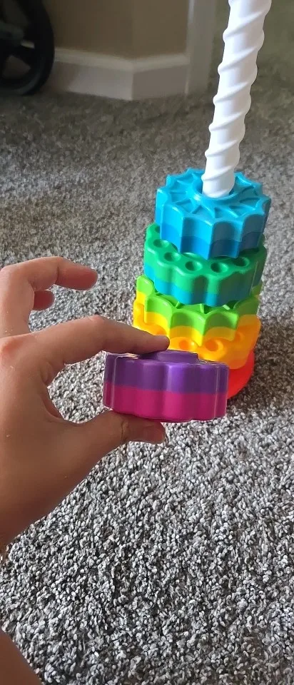 A colorful Montessori-style rotating stacking tower designed to engage toddlers through hands-on play. Children stack, rotate, and explore sizes and colors while developing coordination and problem-solving skills. Made for safe, everyday learning fun.