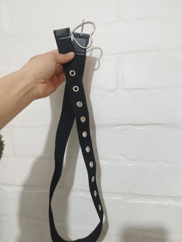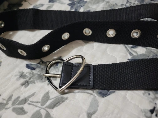 I love this belt, the buckle is of good quality and doesn’t bend, the length and width are also perfect and it fits very well. I also like that it has leather-like tips which gives it a better aesthetic. The only thing I would have liked is for it to have eyelets all over the belt.