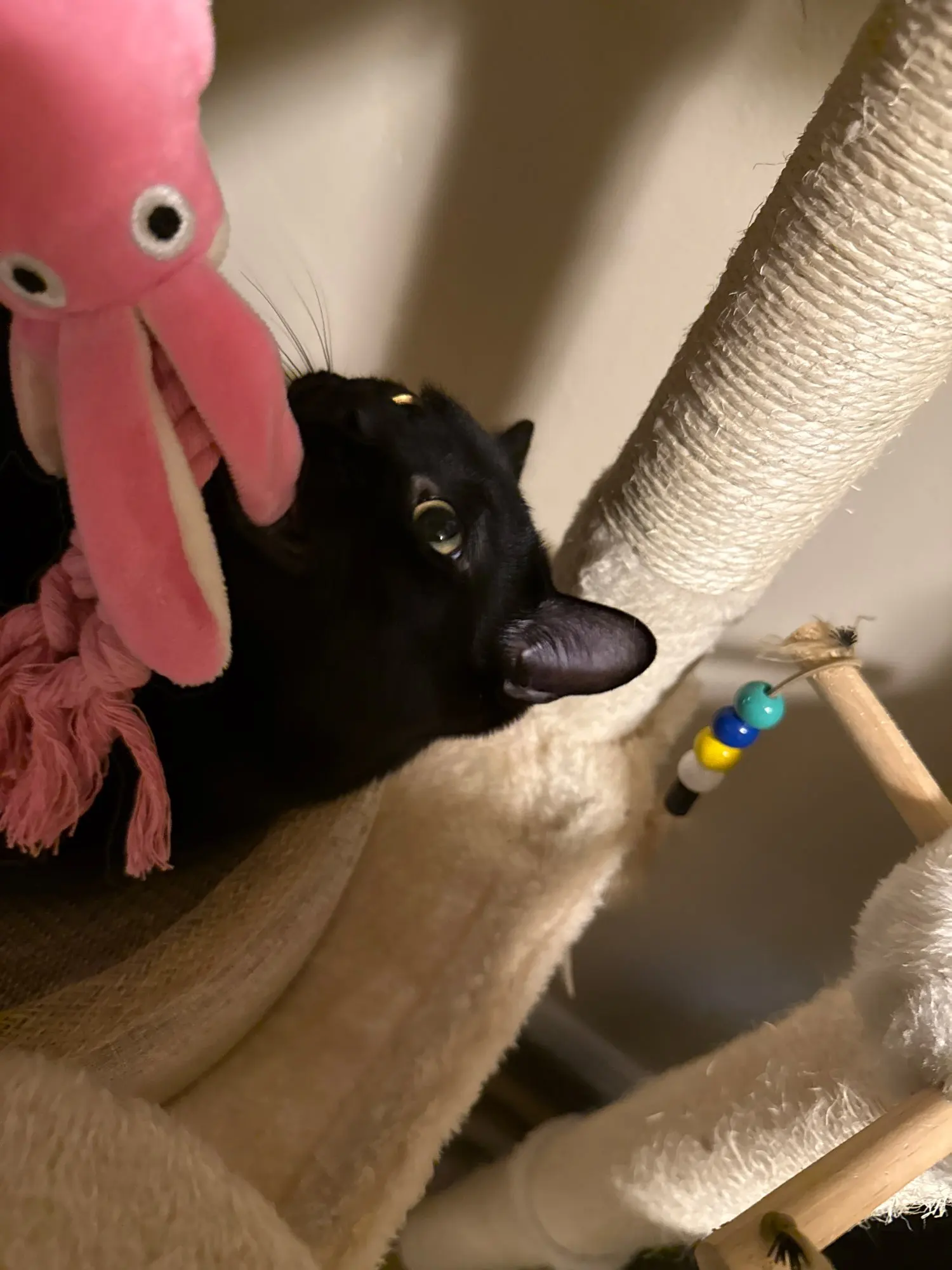 - Rope legs add texture for chewing and tugging