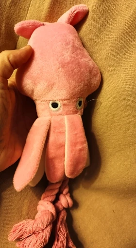 Keep your dog entertained with this cute plush squid toy designed for chewing, tugging, and squeaky play.
