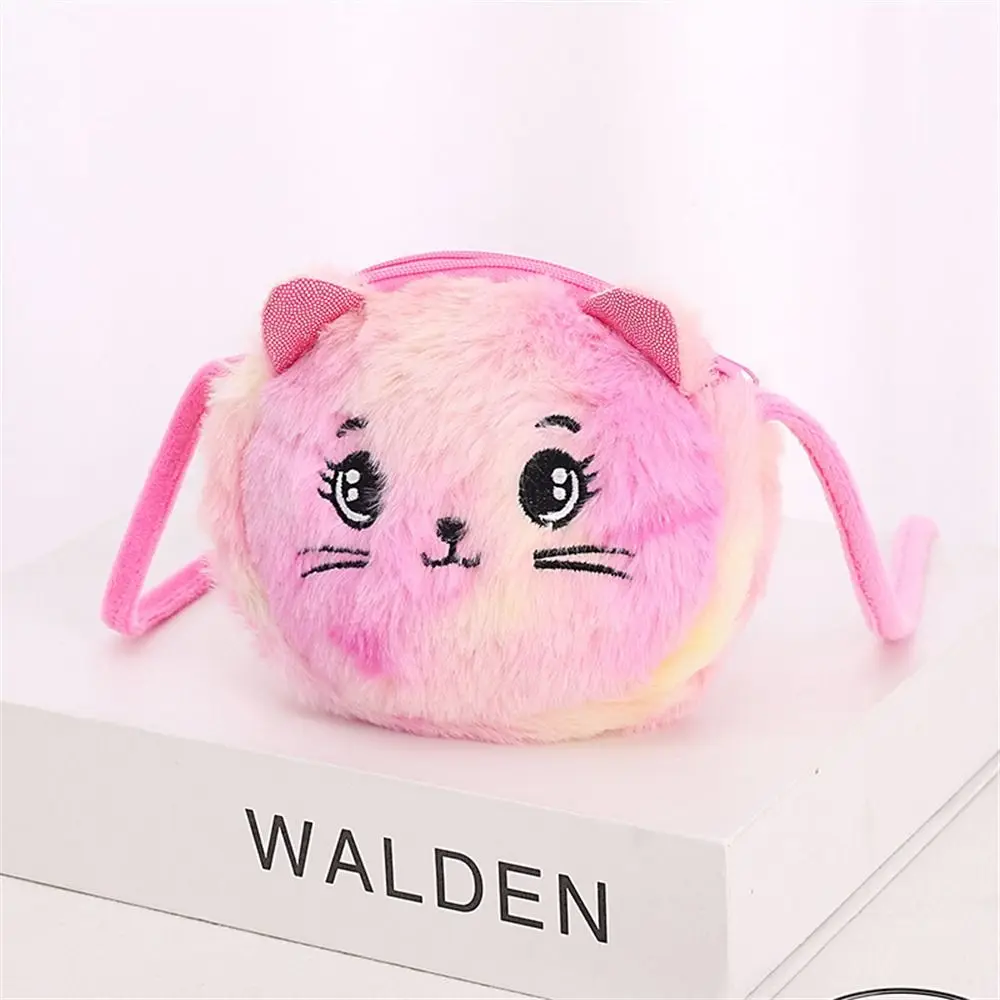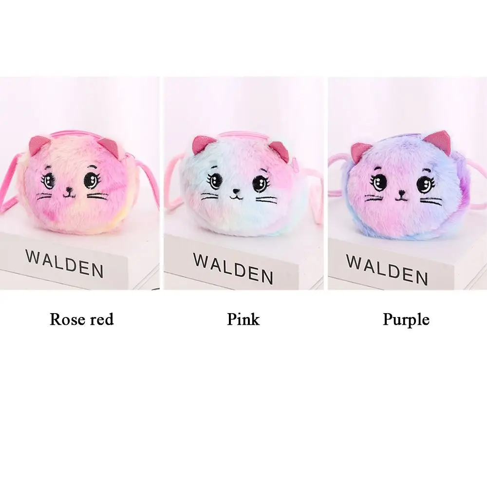 A soft and adorable rainbow-color cat shoulder bag designed to delight kids and young girls. Made from plush material with a lightweight feel, it is perfect for carrying small daily essentials while adding a cute fashion touch.