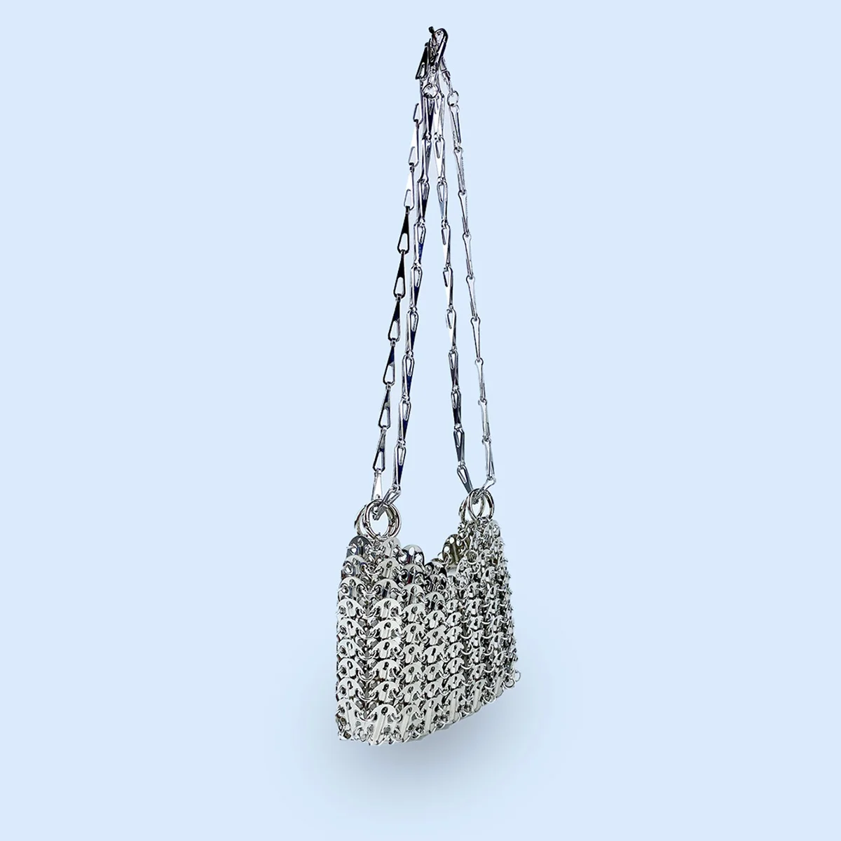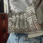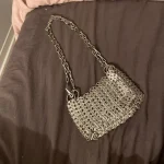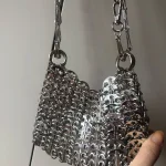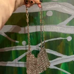 A handcrafted silver shoulder bag featuring a woven beaded and sequin design that adds instant sparkle to any outfit. Compact yet eye-catching, perfect for carrying your phone and essentials for parties, evenings out, or stylish daily wear.