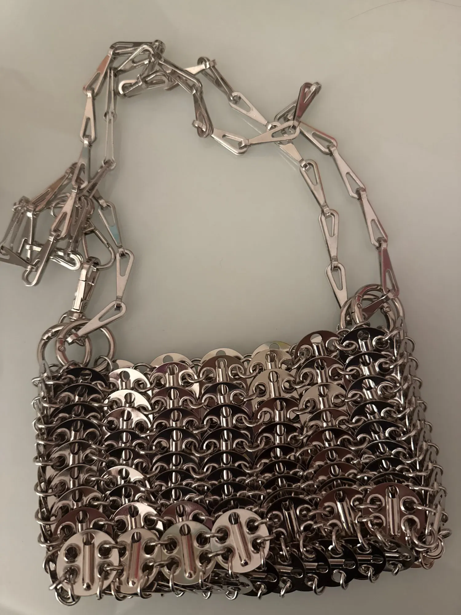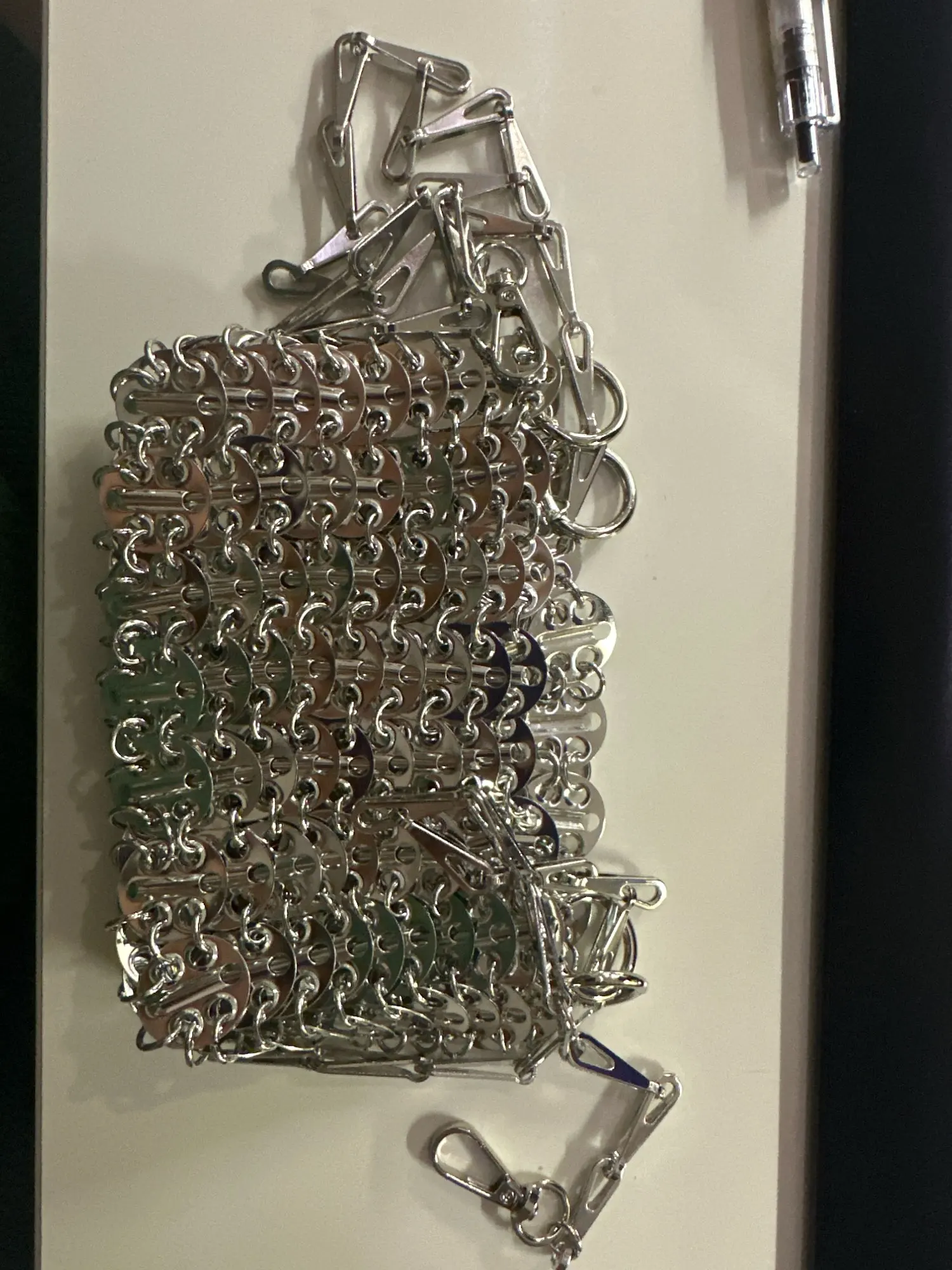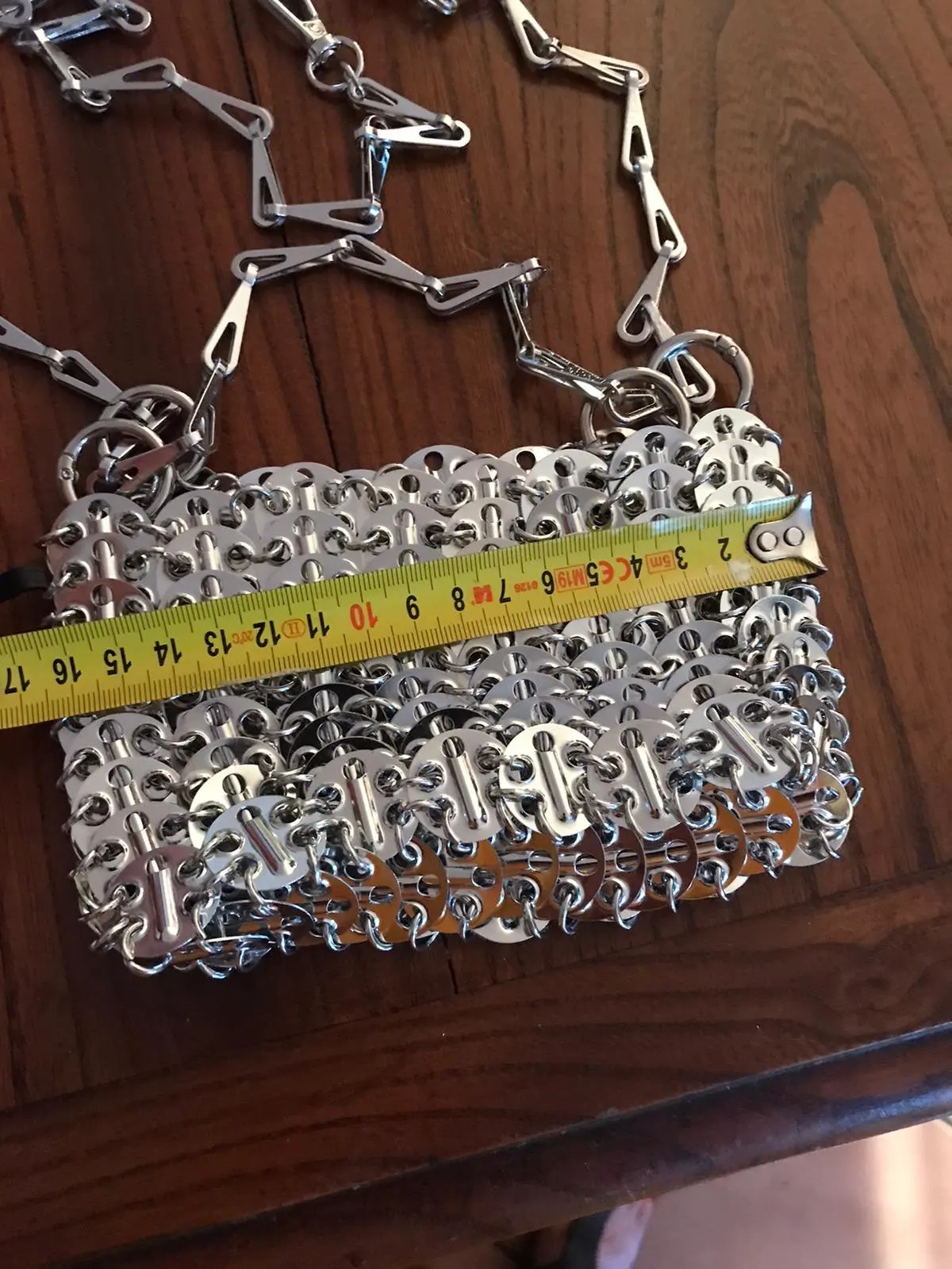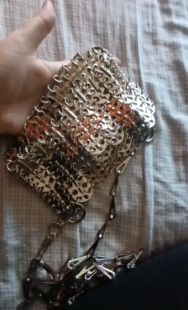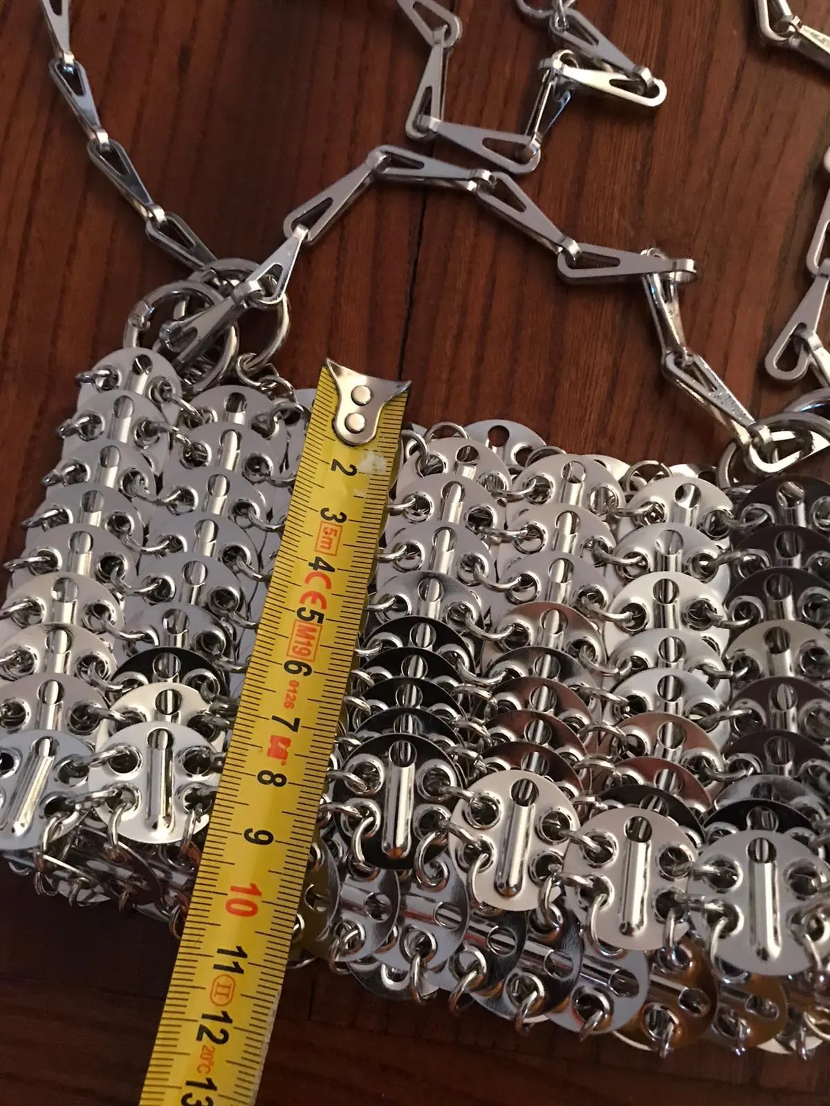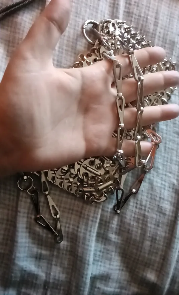 Beautiful bag but fragile, after use one of the links gave way but easily repairable. Very heavy and high quality beyond that.