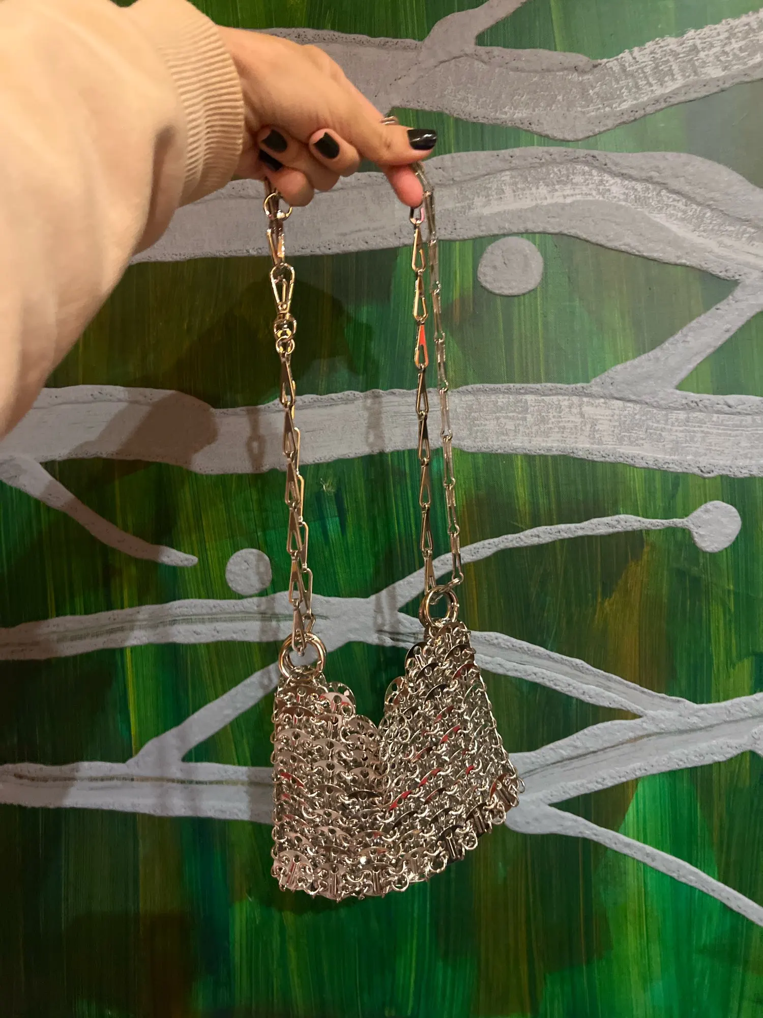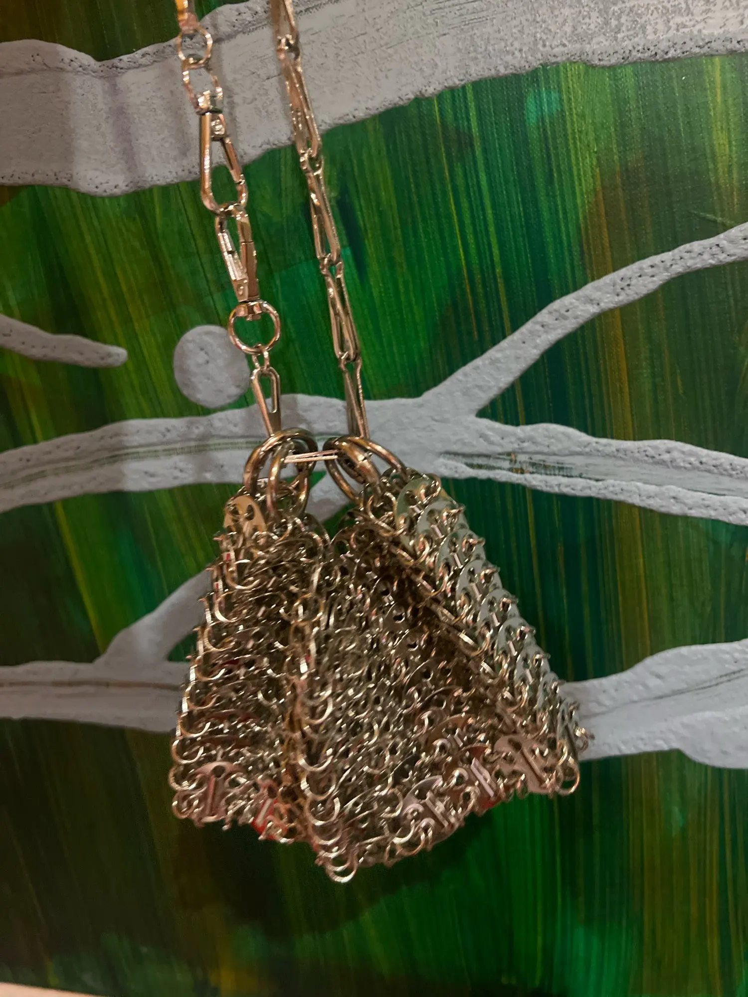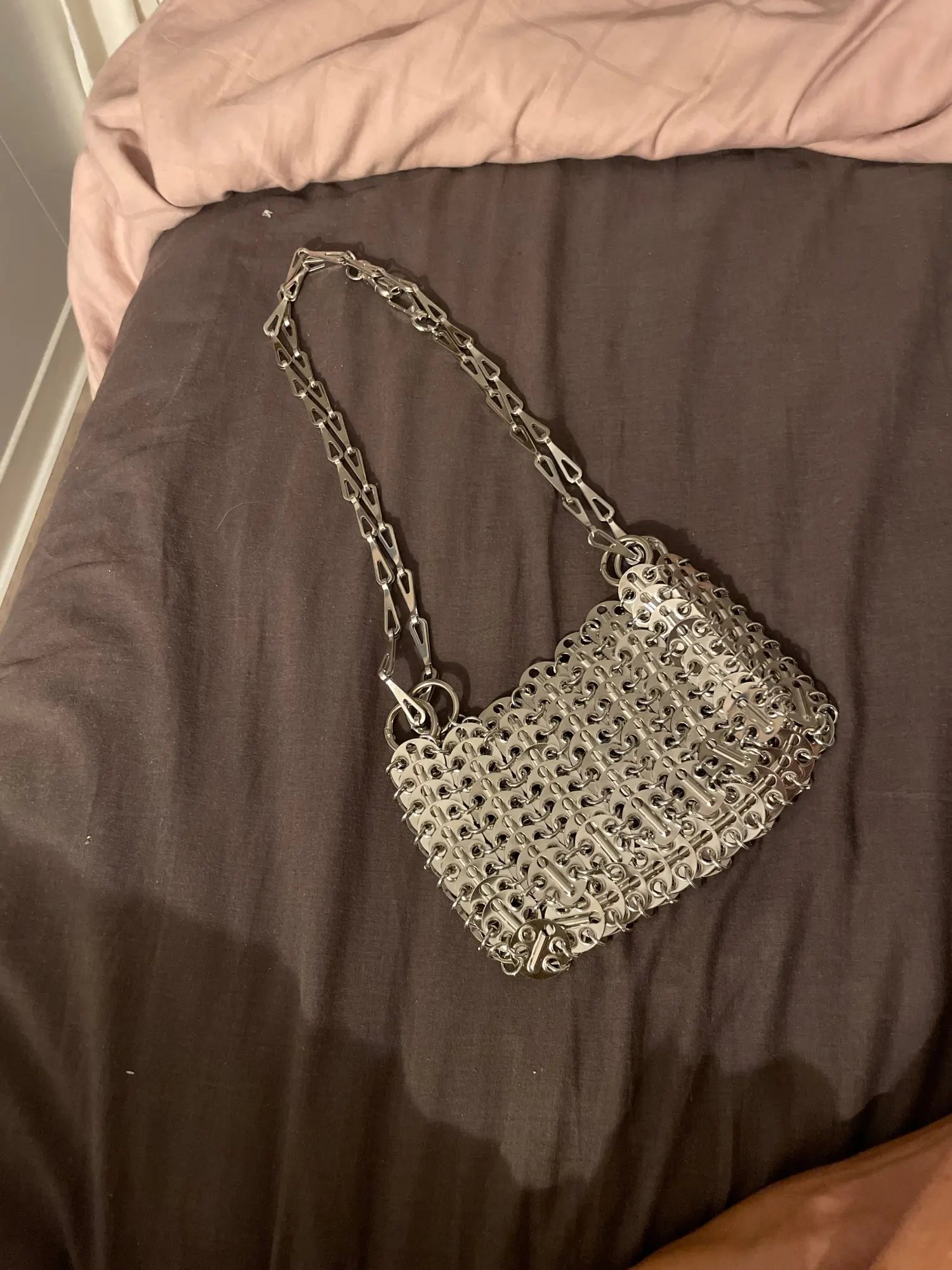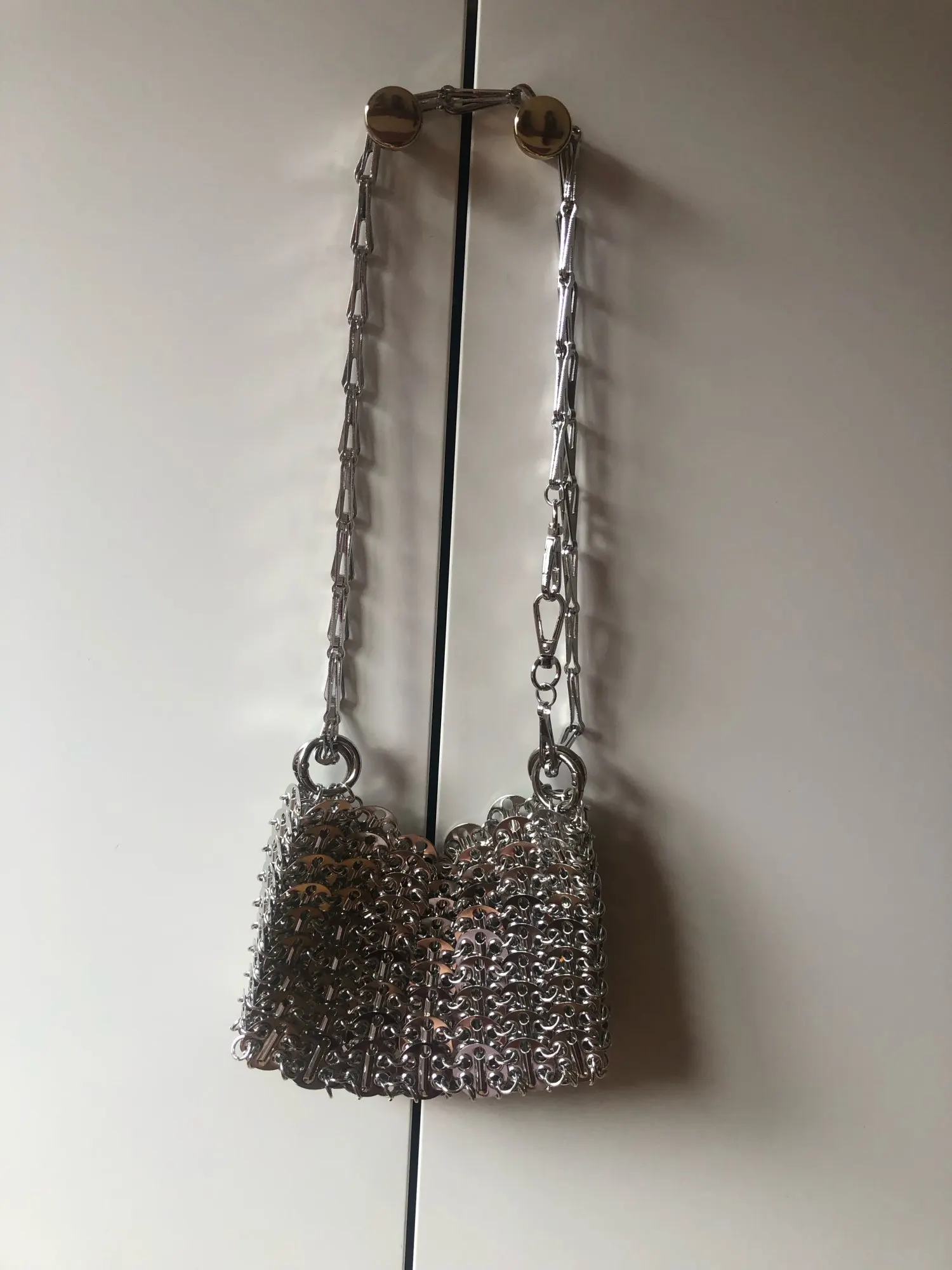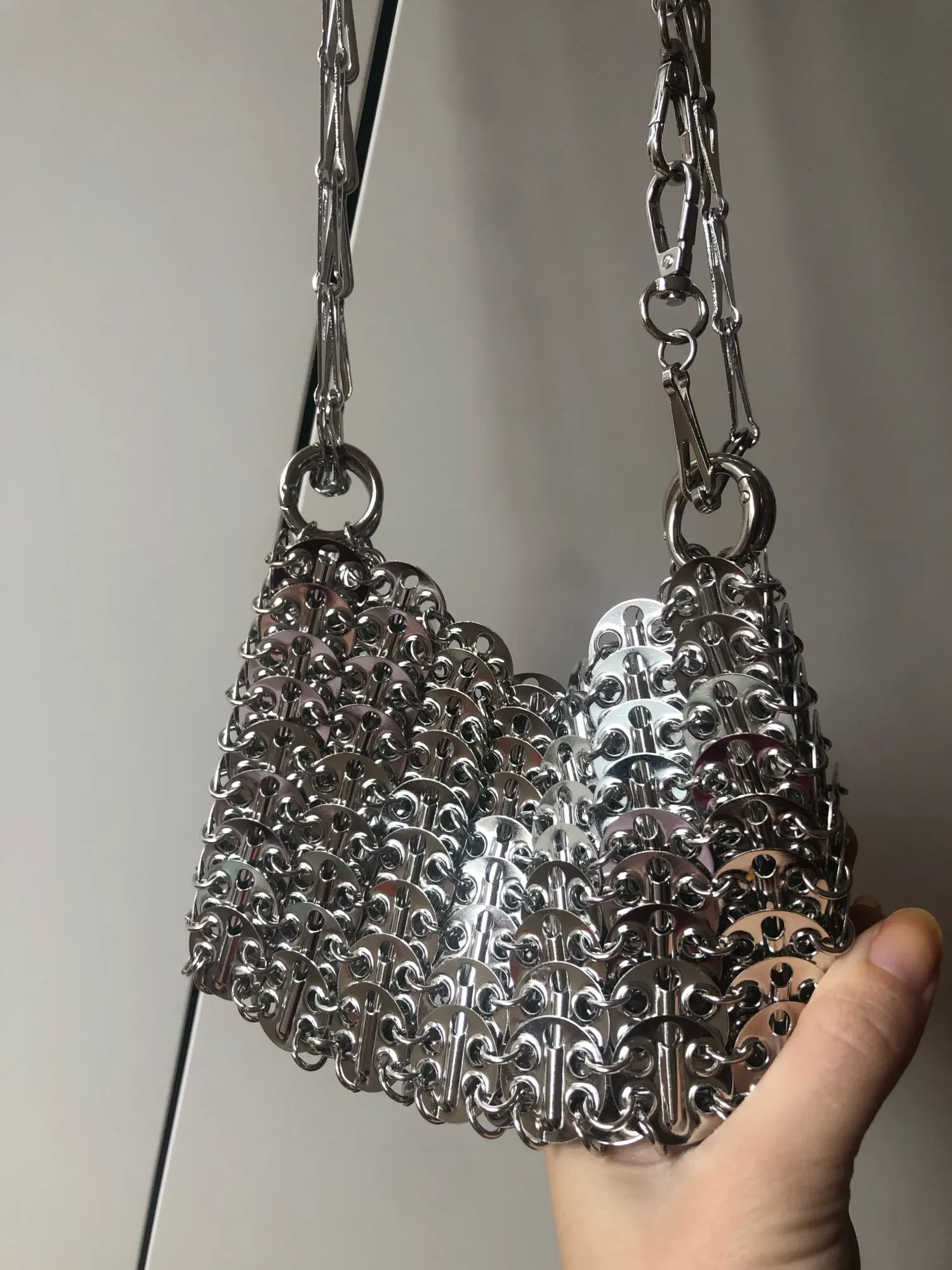Beautiful bag but fragile, after use one of the links gave way but easily repairable. Very heavy and high quality beyond that.