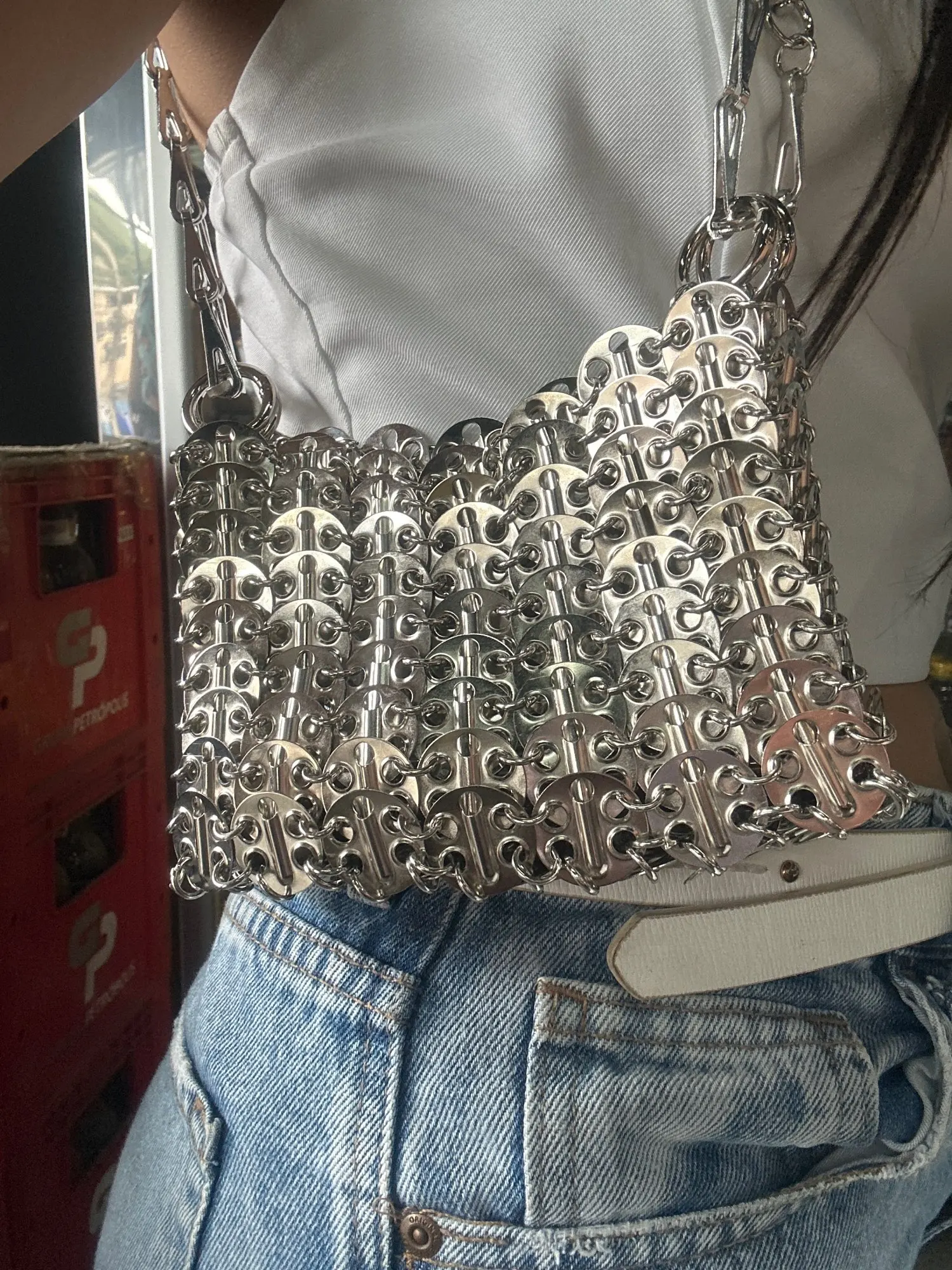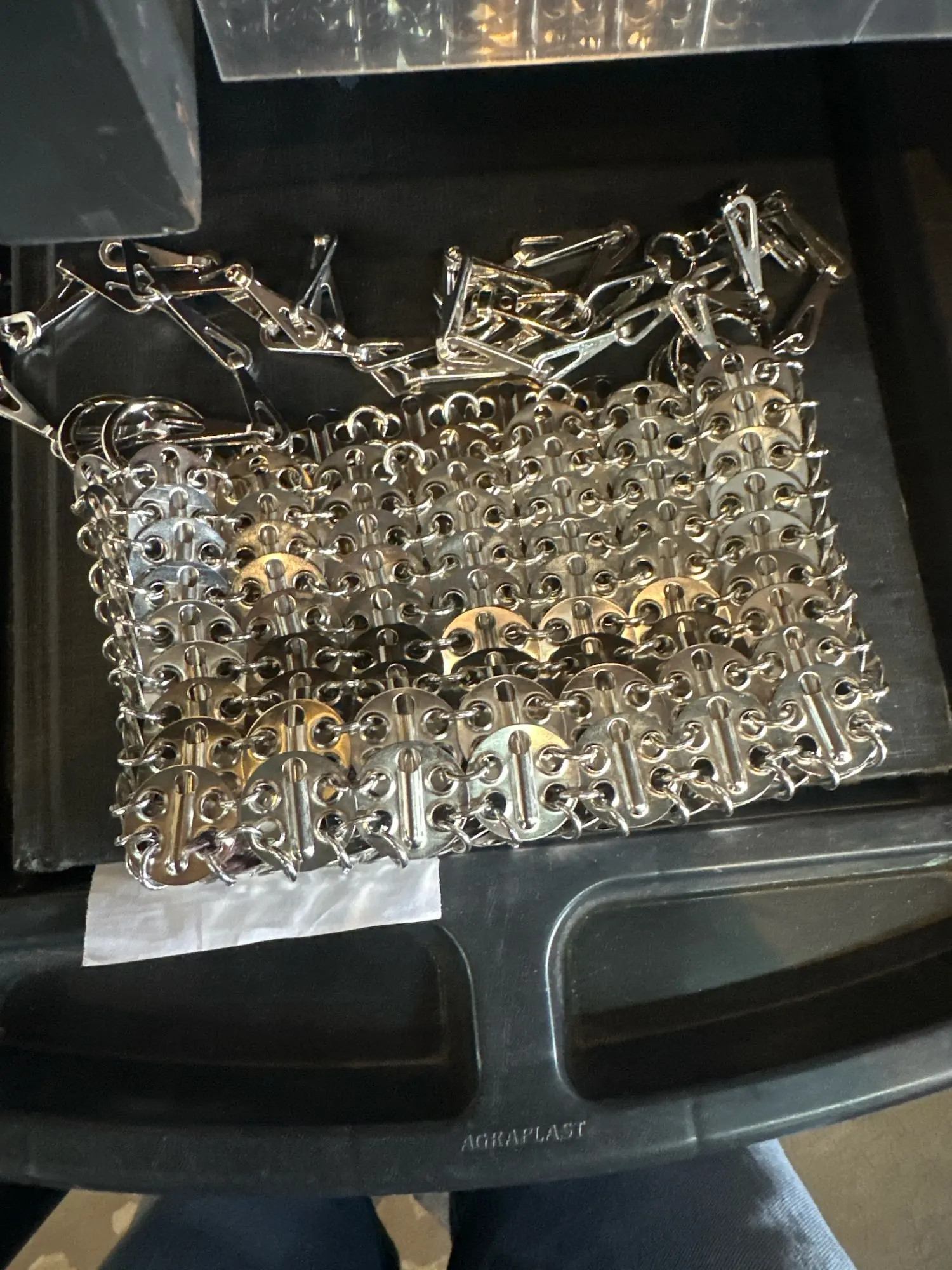 Just like paco rabanne purse. Just add feathers!